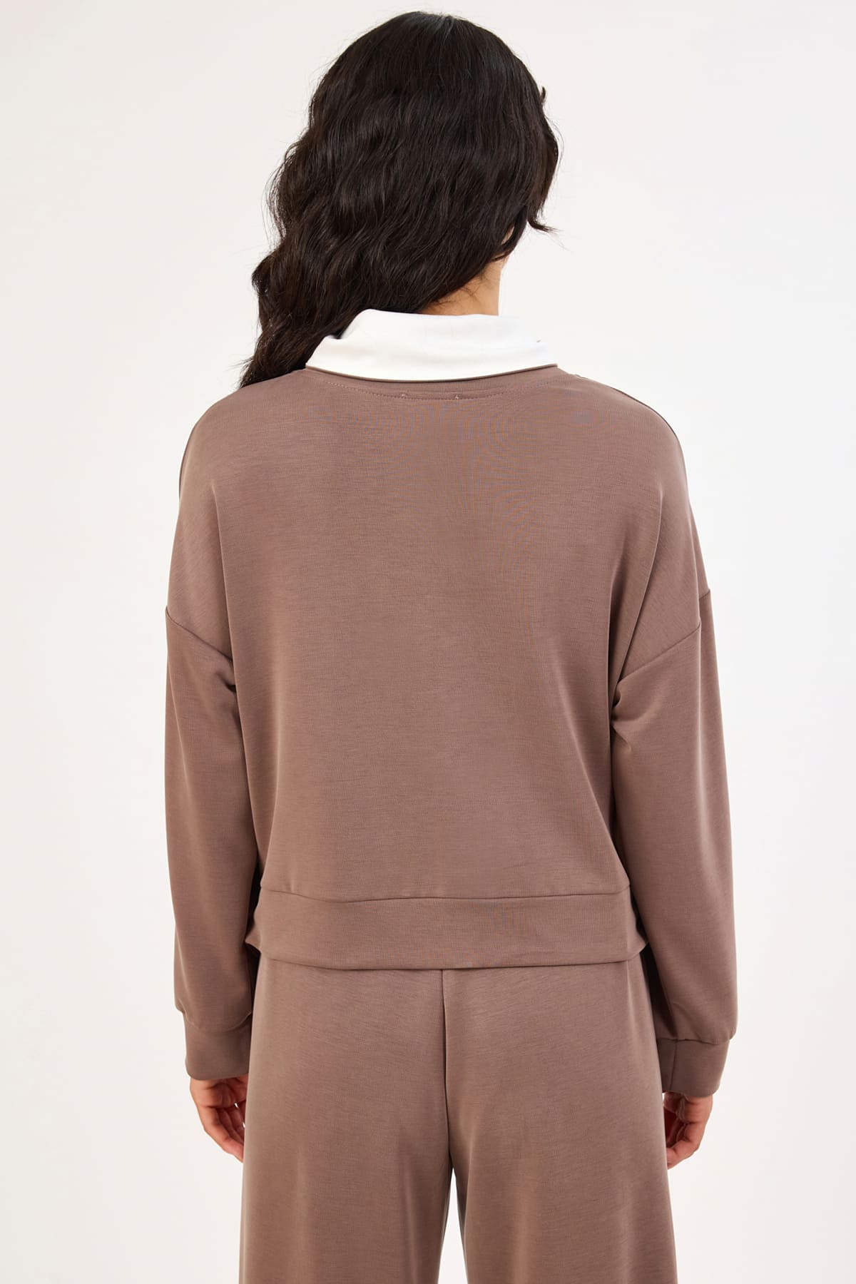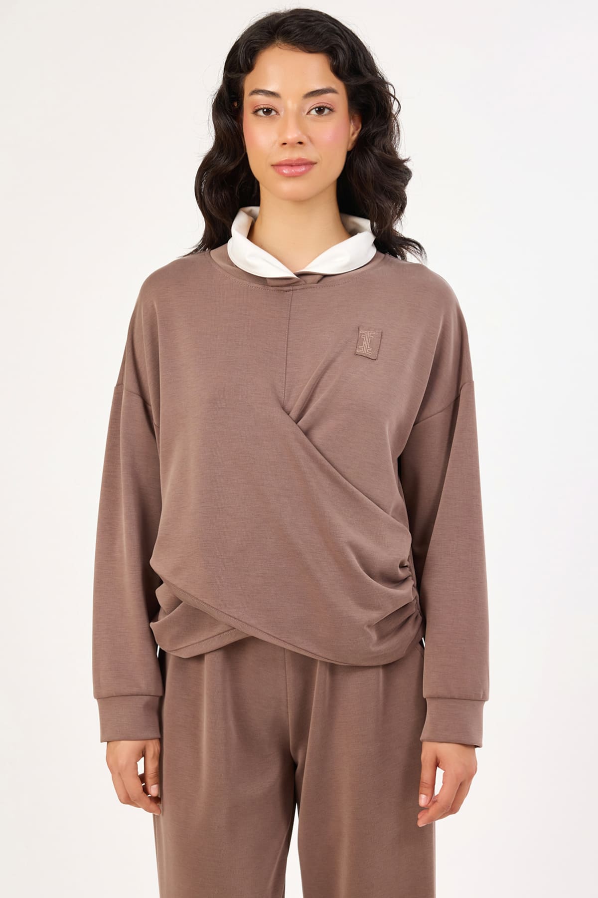 Soft yüzeyli nakış detaylı kapüşonlu bluz