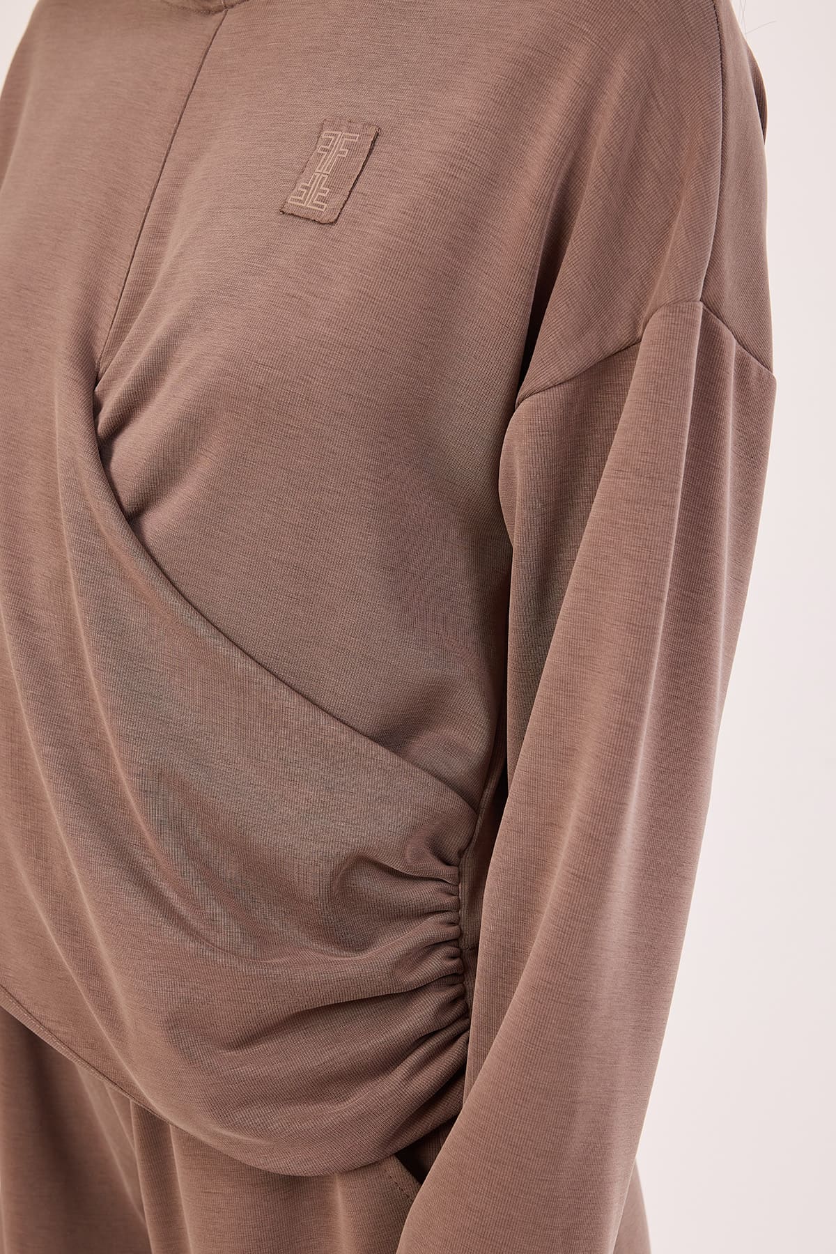 ÜRÜN BİLGİSİ:Hafif ve soft yüzeyli likralı kumaş,kapüşonlu,nakış detaylı,rhata form şık bluz.