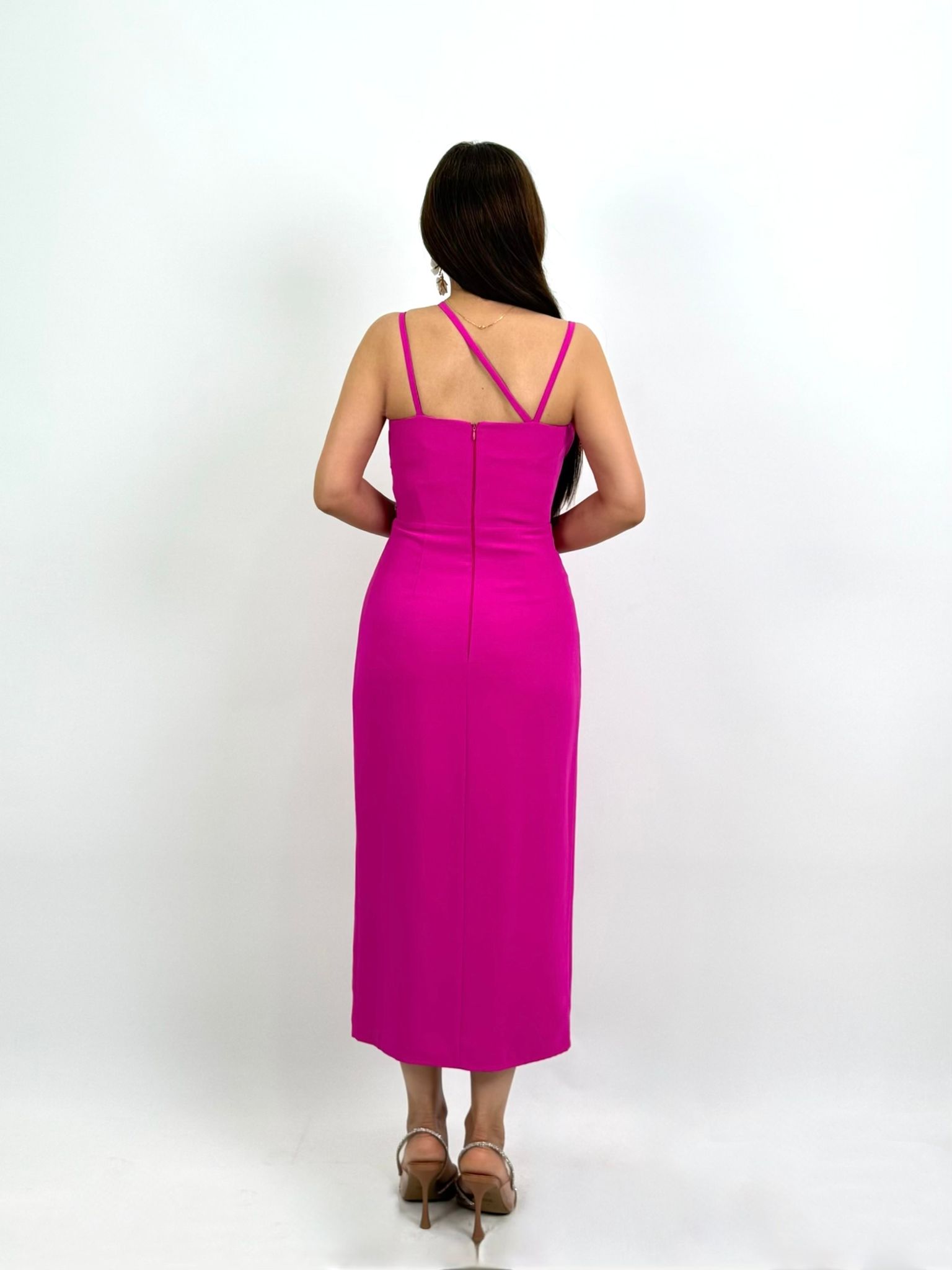 ÜRÜN BİLGİSİ:Dökümlü kumaş,asimetrik yakalı ve askıl,ön yaka kenarı kristal taş şeritli,önü yırtmaçlı,elbise