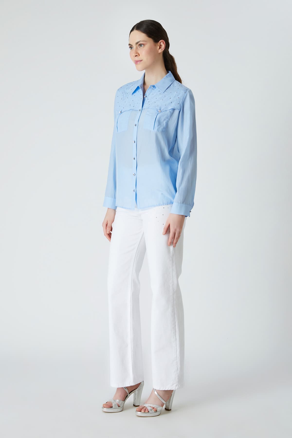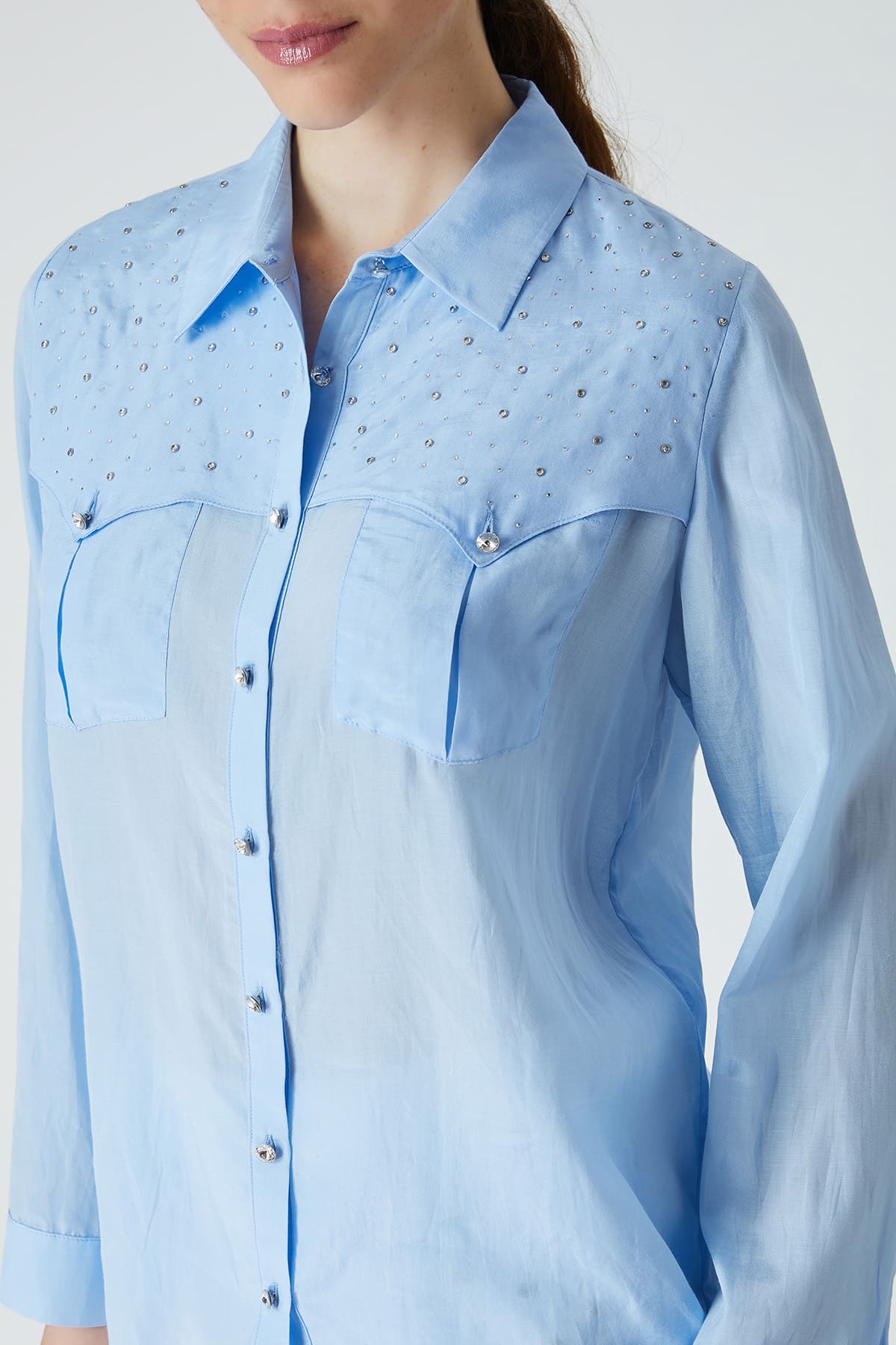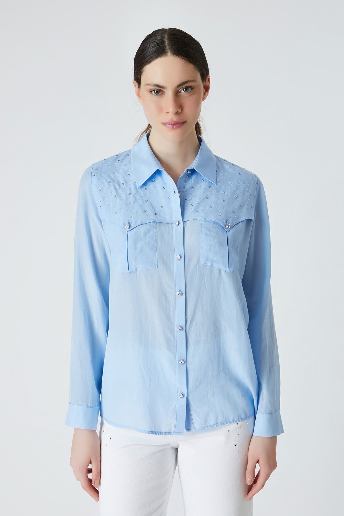 Taş detaylı viskon gömlek