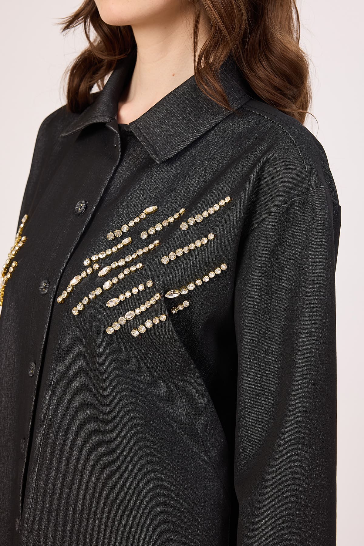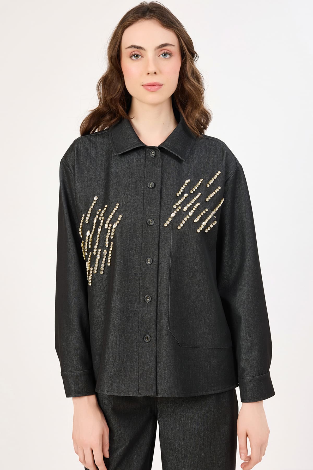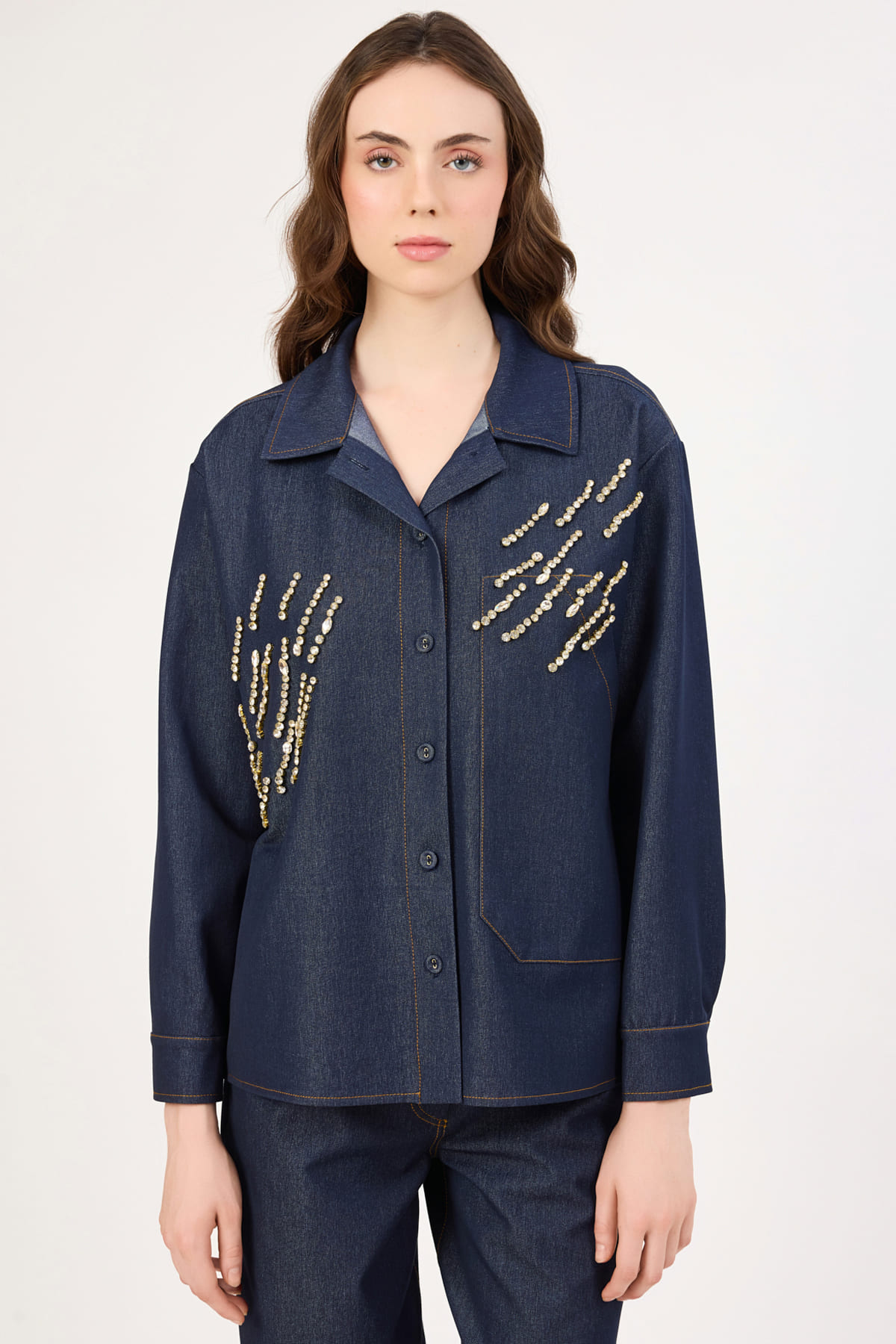 ÜRÜN BİLGİSİ:Viskon içerikli hafif lycralı kot kumaş,çıt çıtlı,taş işlemeli,düz form kot gömlek.1 beden 36-38-40 2 beden 42-44-46 alabilir.