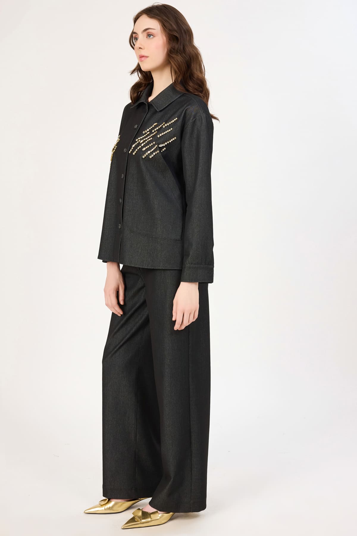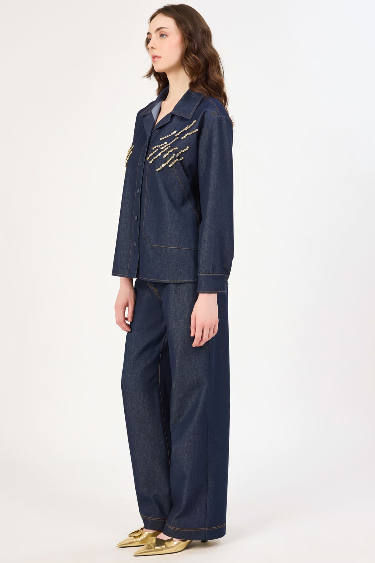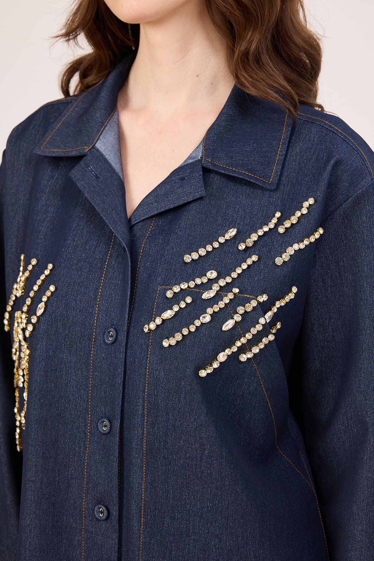ÜRÜN BİLGİSİ:Viskon içerikli hafif lycralı kot kumaş,çıt çıtlı,taş işlemeli,düz form kot gömlek.1 beden 36-38-40 2 beden 42-44-46 alabilir.