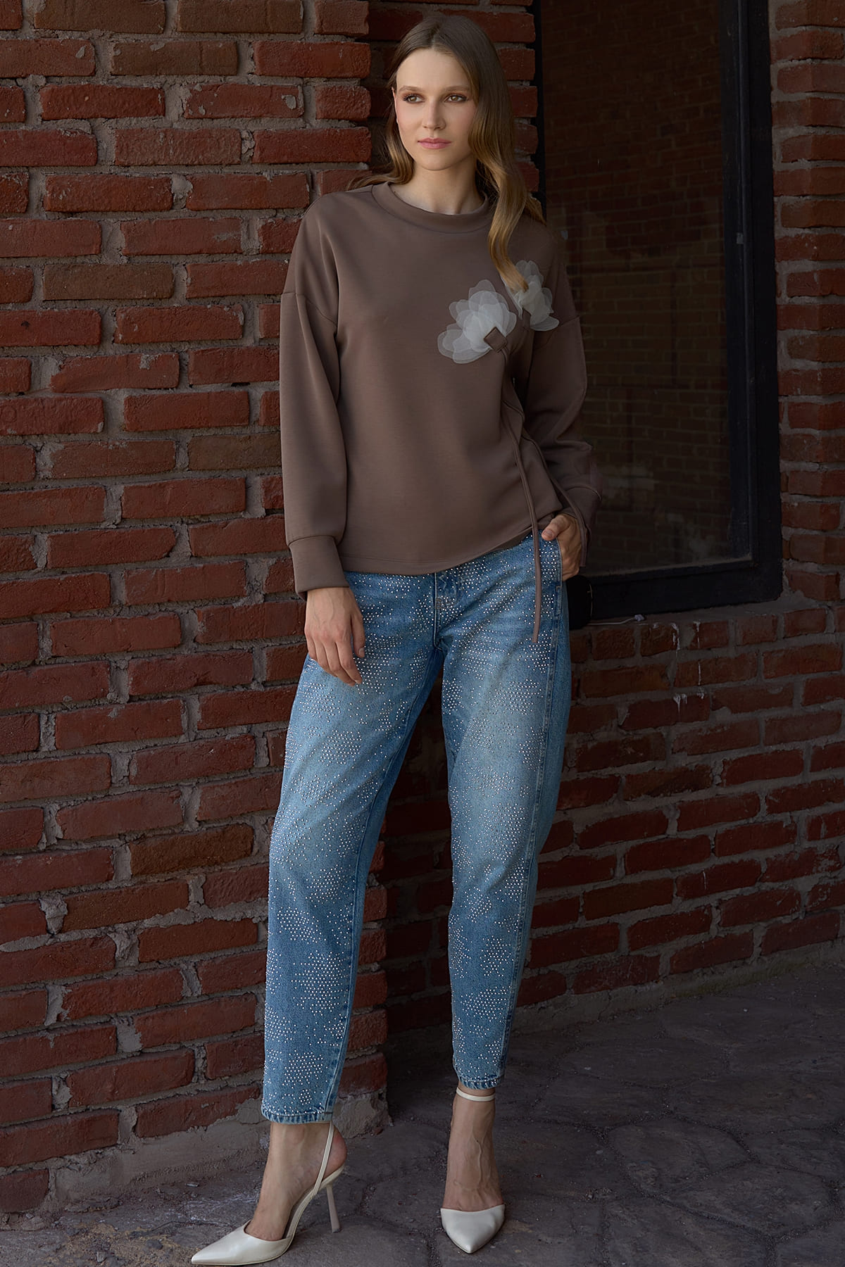 Taşlı normal bel jean pantolon