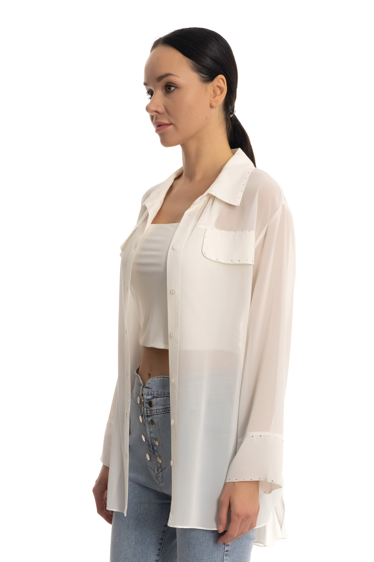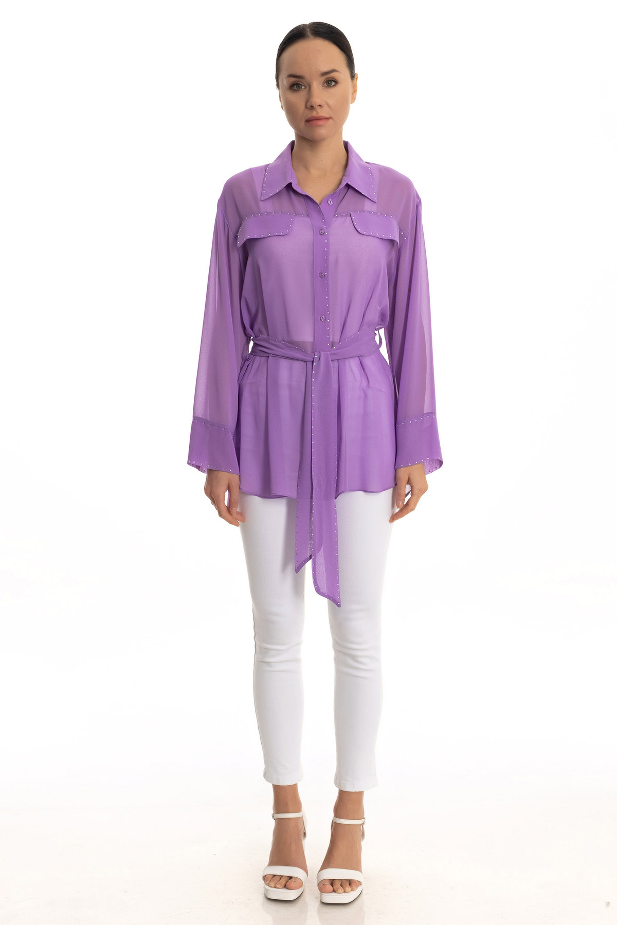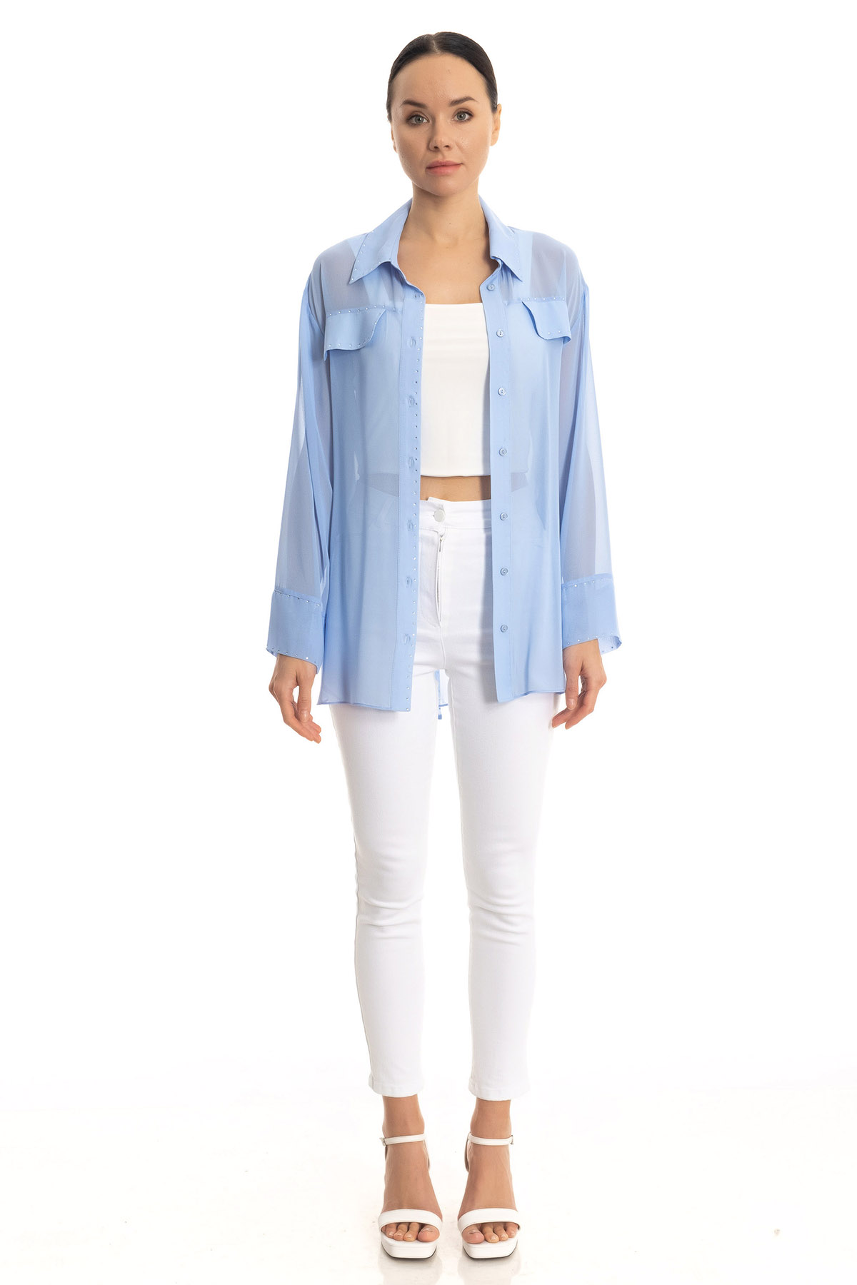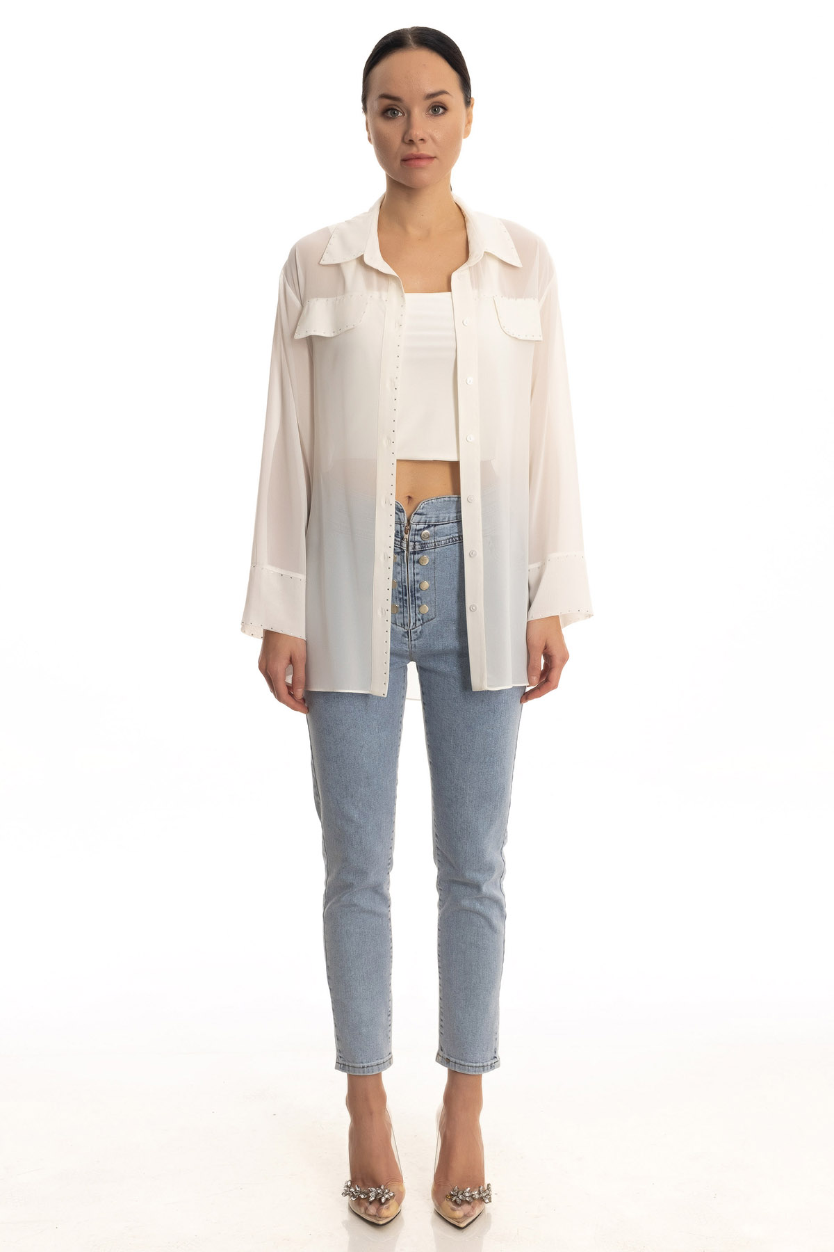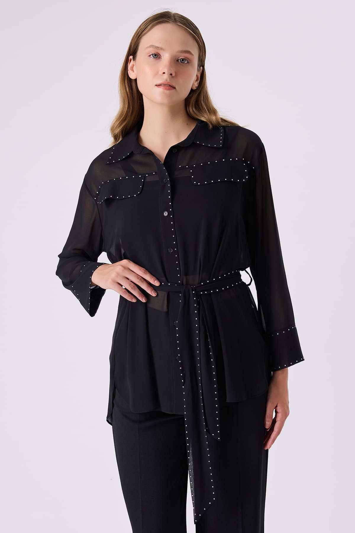 Taşlı şifon gömlek