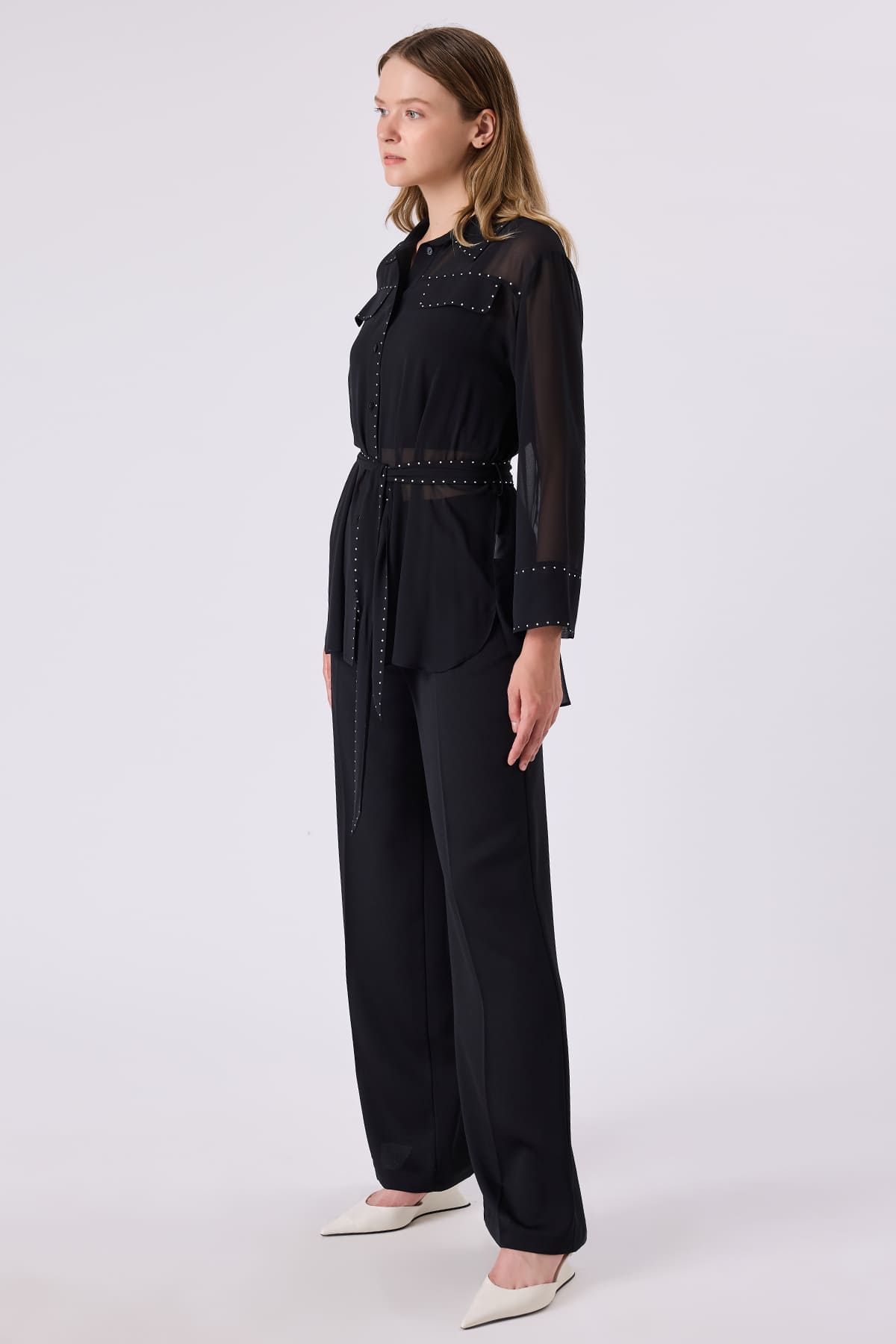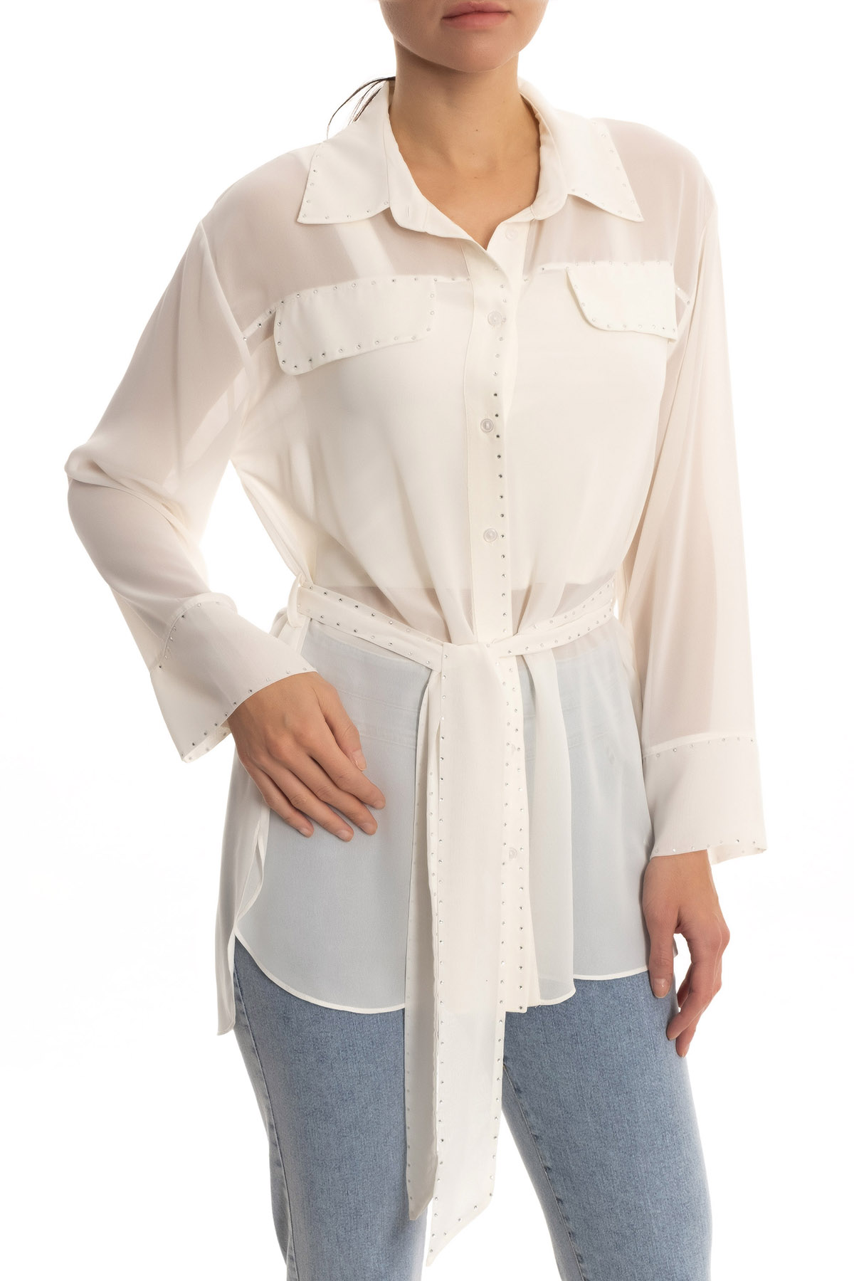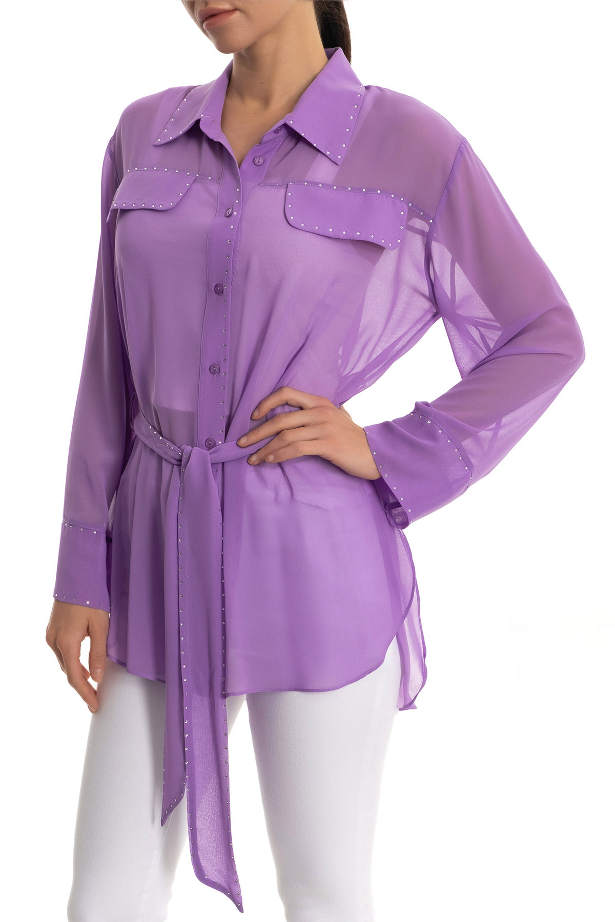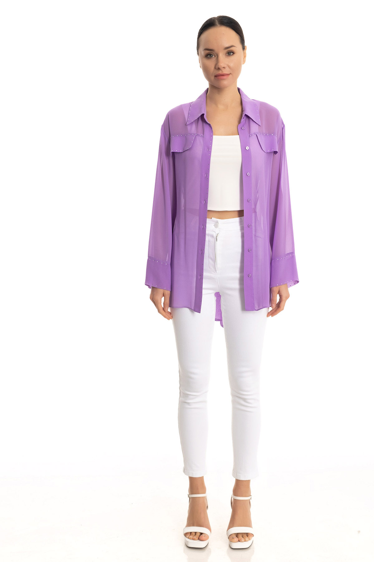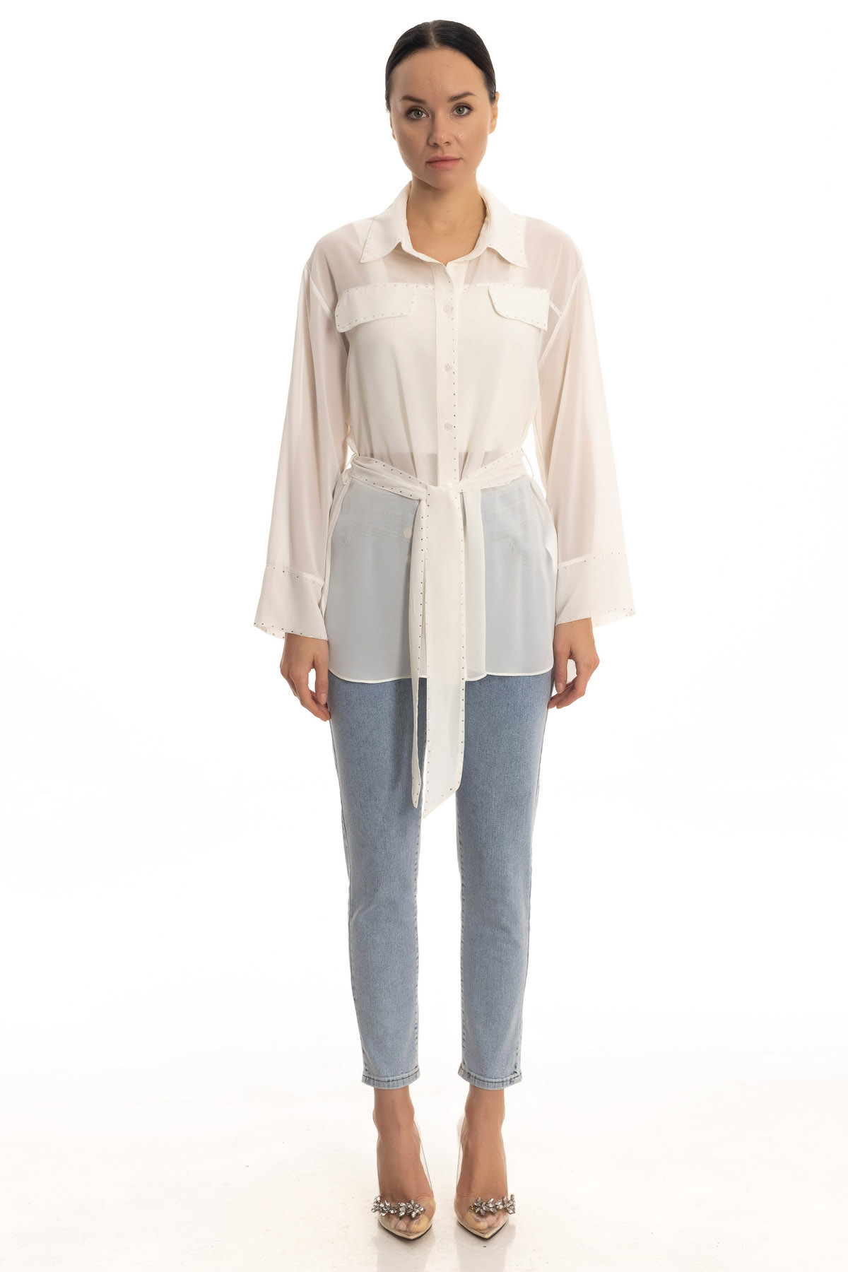 Taşlı şifon gömlek