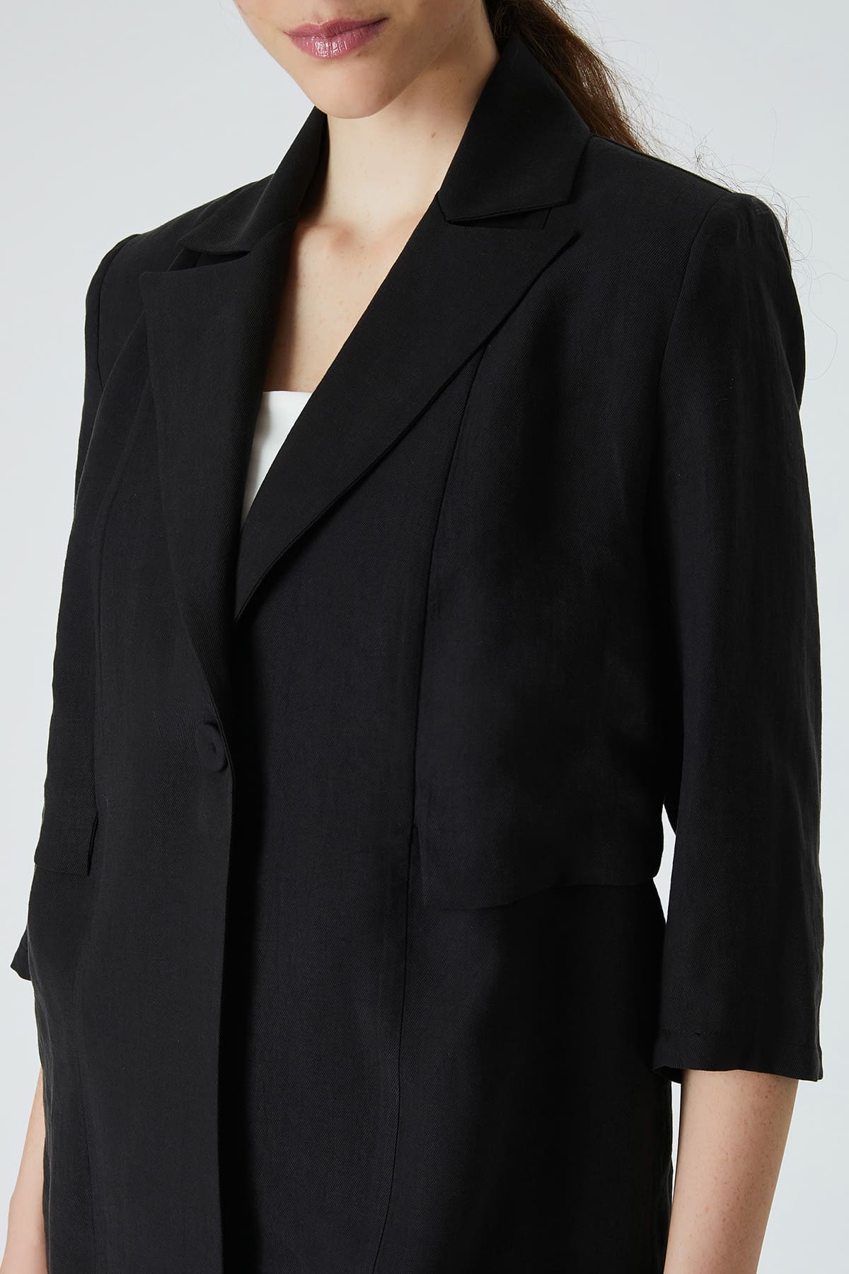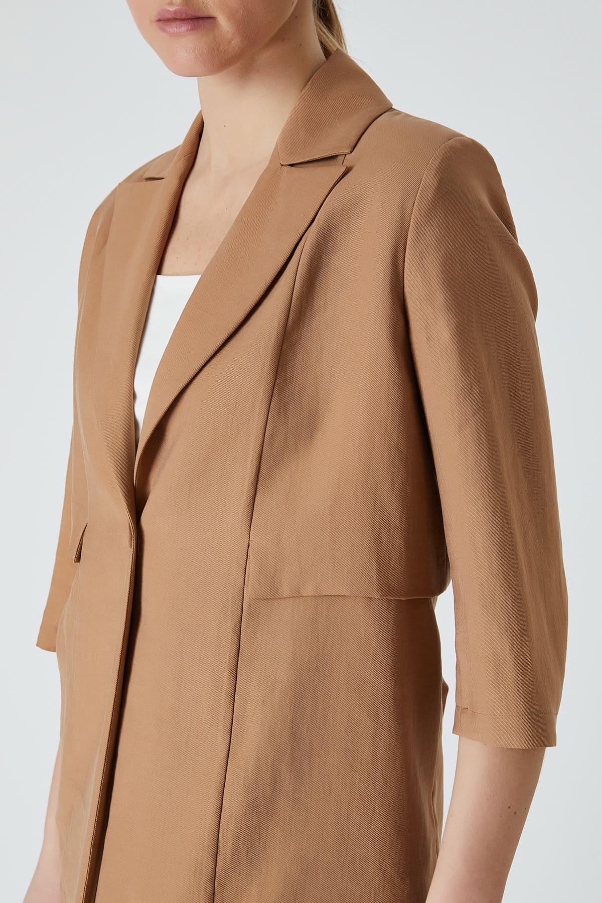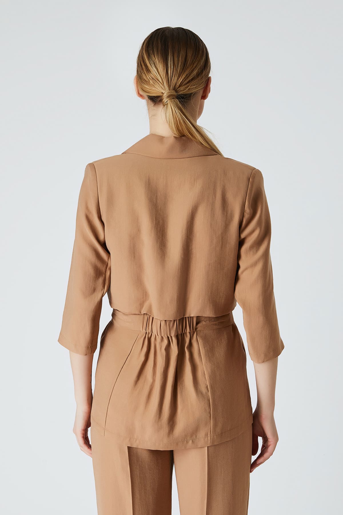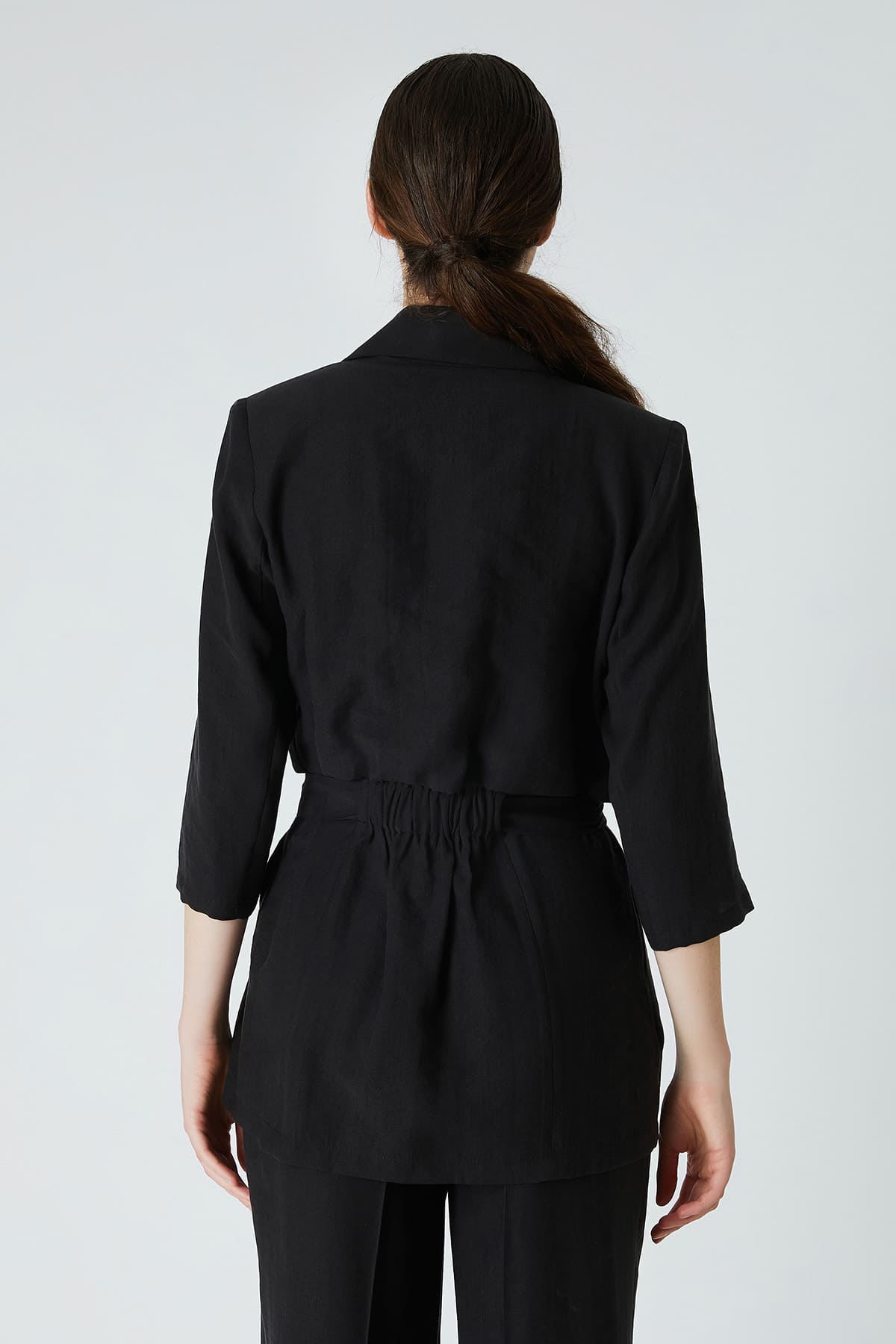 ÜRÜN BİLGİSİ:Doğal dokulu kumaş,blazer yakalı,truvakar kollu,üstü kup parçalı,tek düğmeli,arka ortası lastik detaylı,yan cepli,astarsız şık ceket.