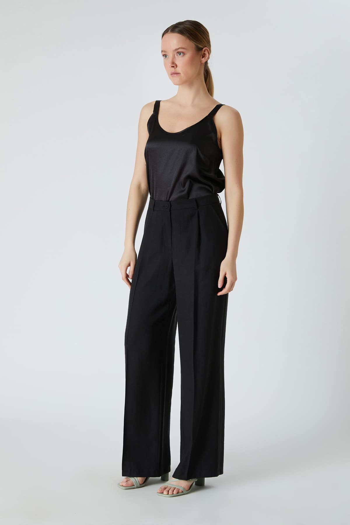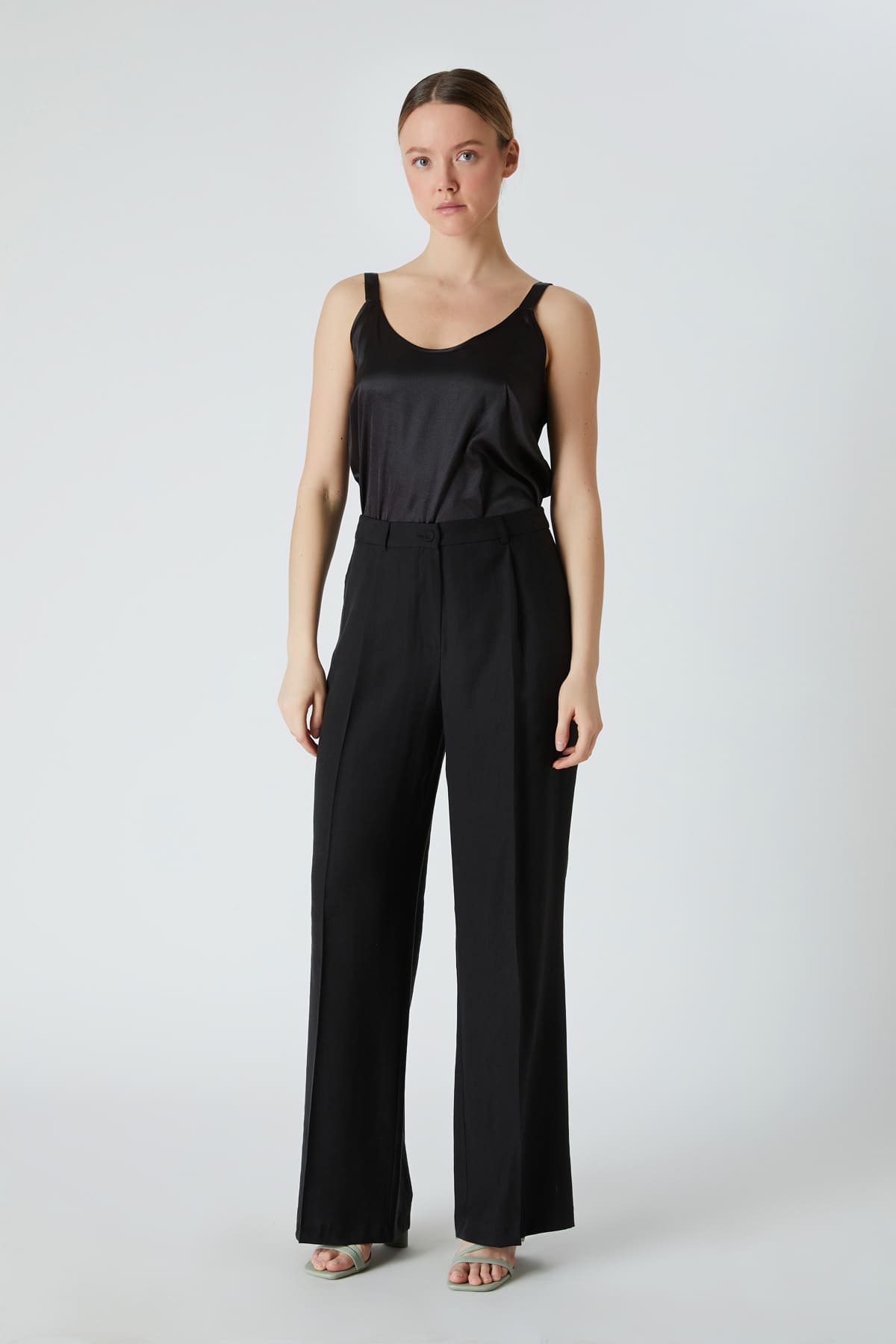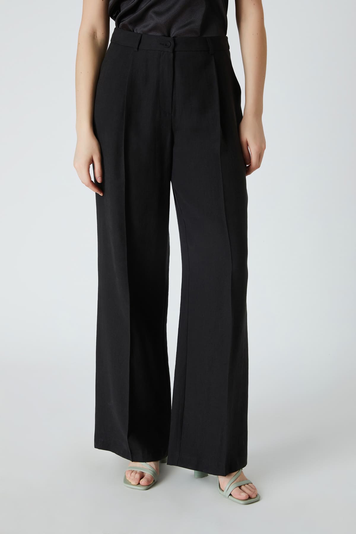 ÜRÜN BİLGİSİ:Tencel kumaş,normal bel,yan cepli,düğme kapamalı,hafif geniş paça pantolon.