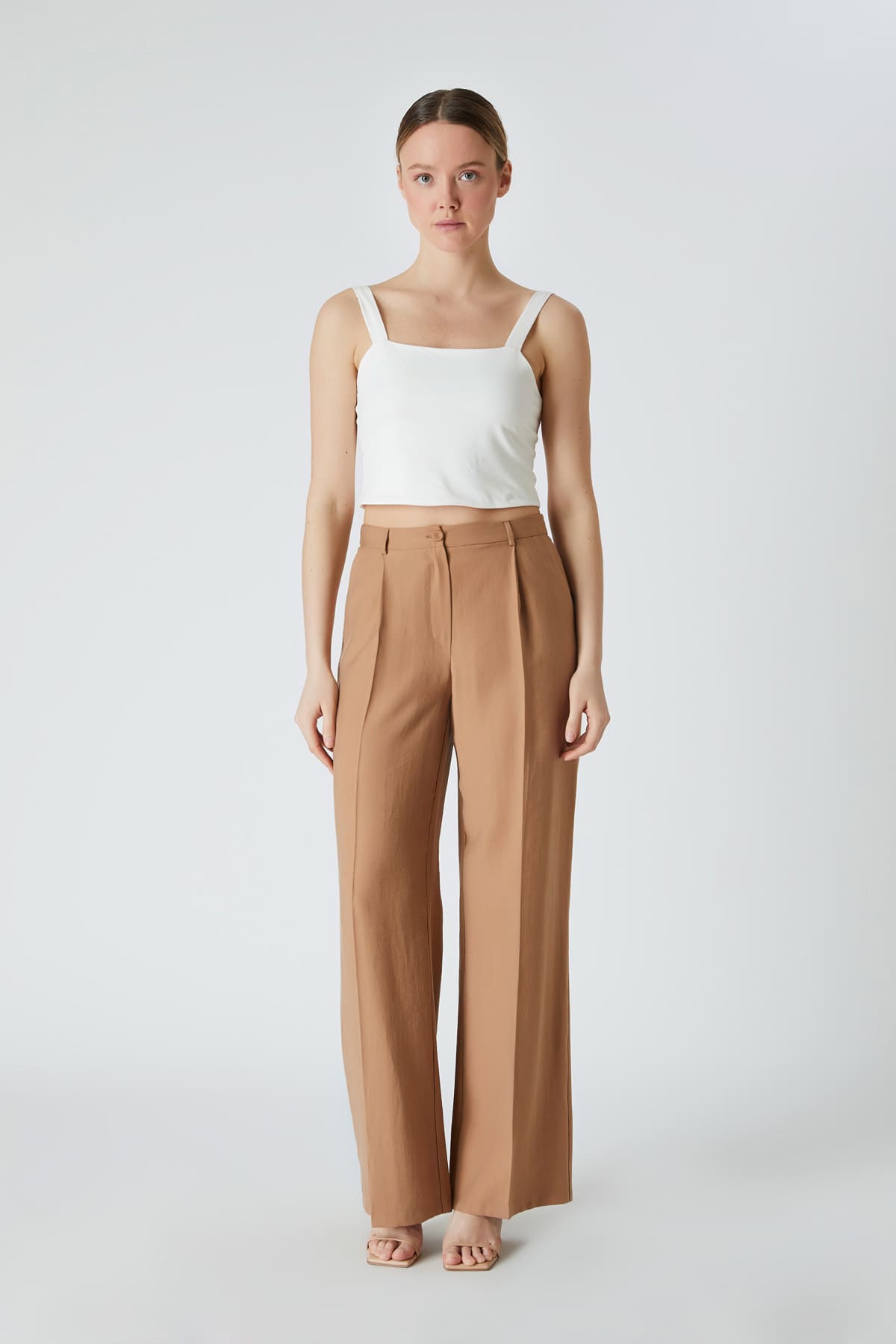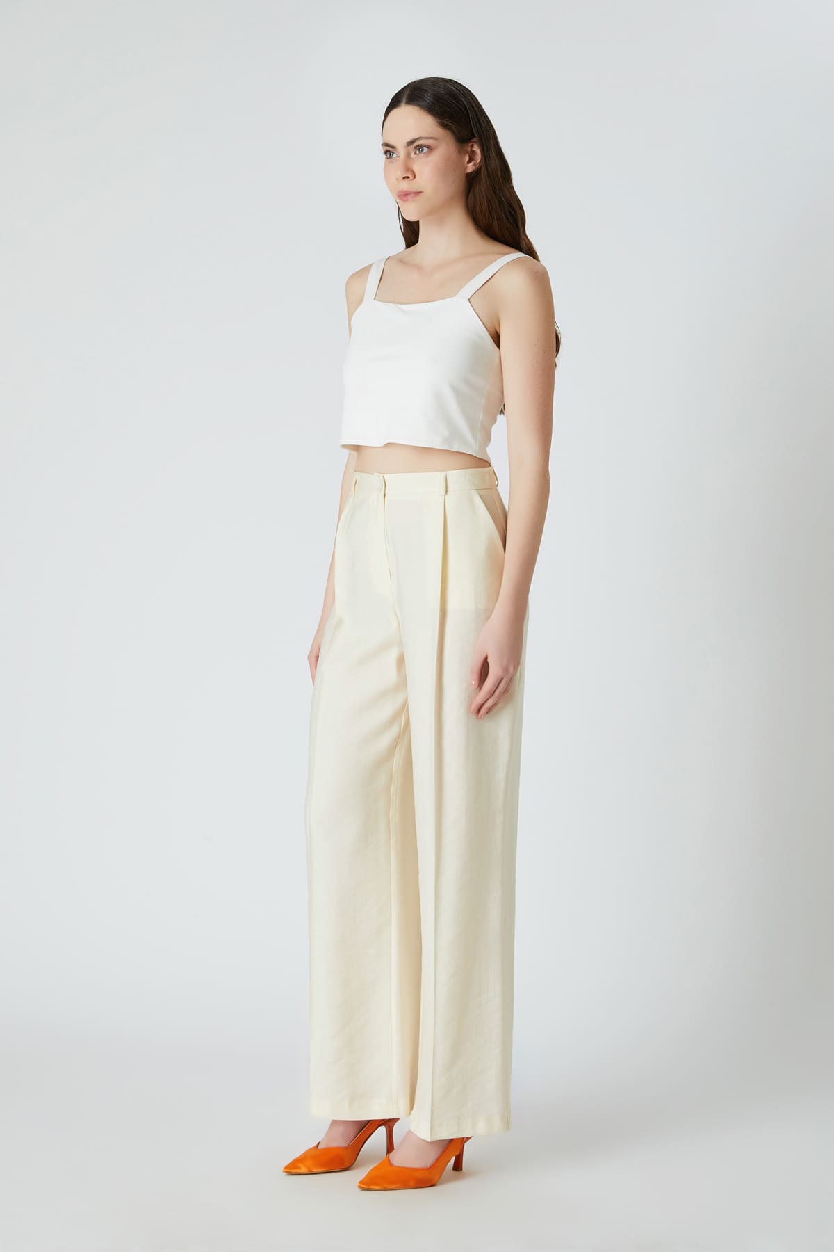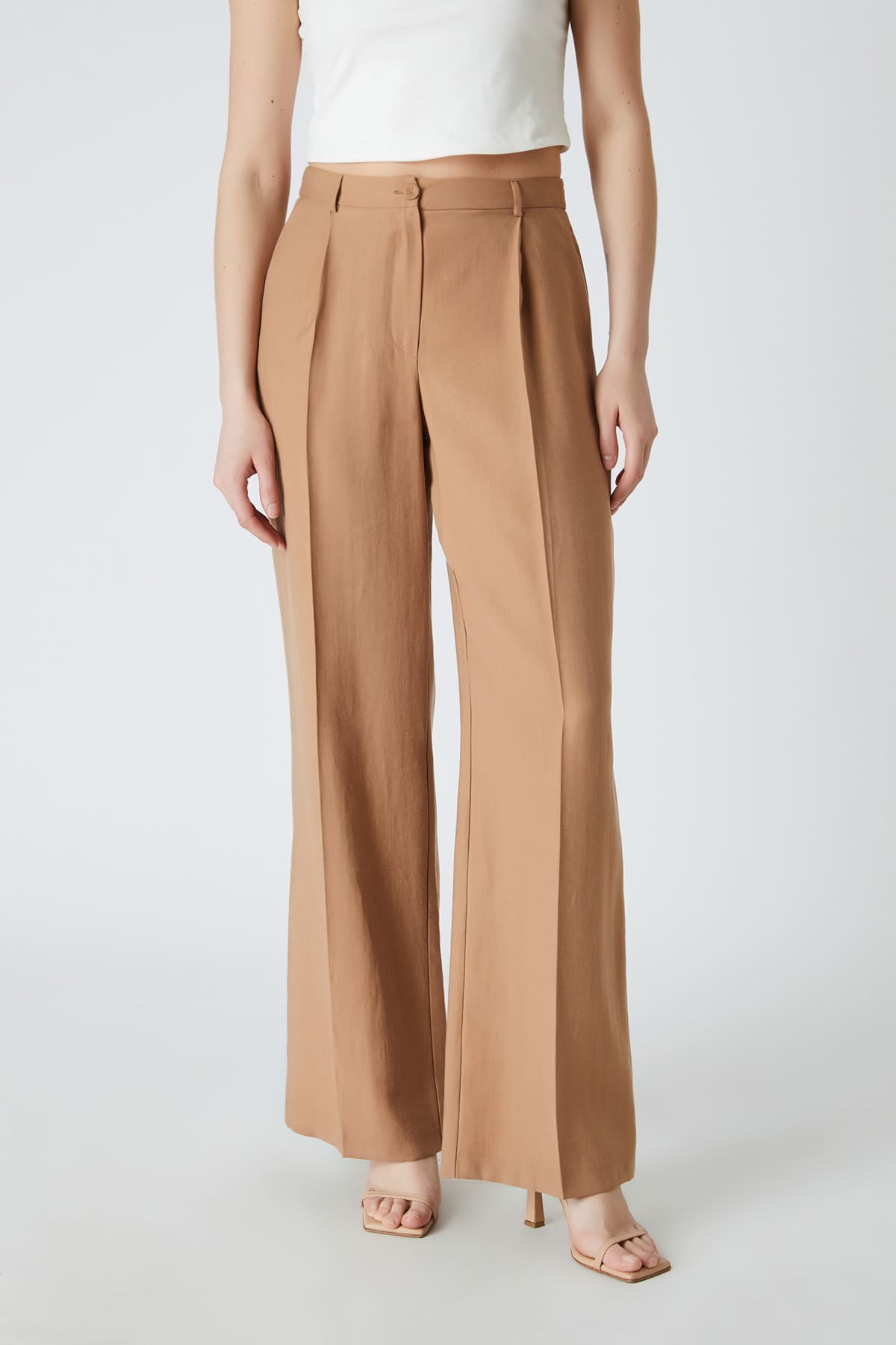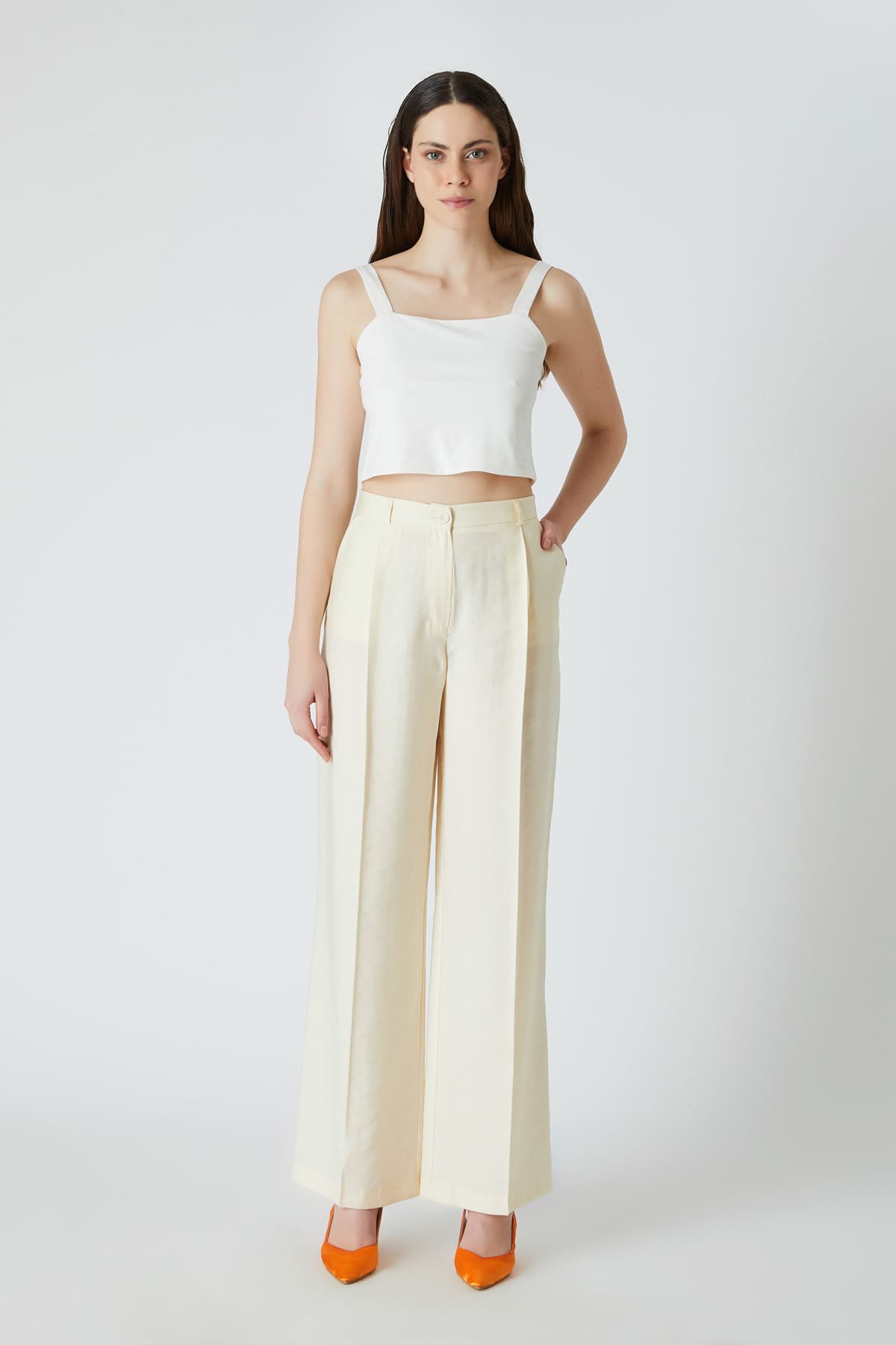 ÜRÜN BİLGİSİ:Tencel kumaş,normal bel,yan cepli,düğme kapamalı,hafif geniş paça pantolon.