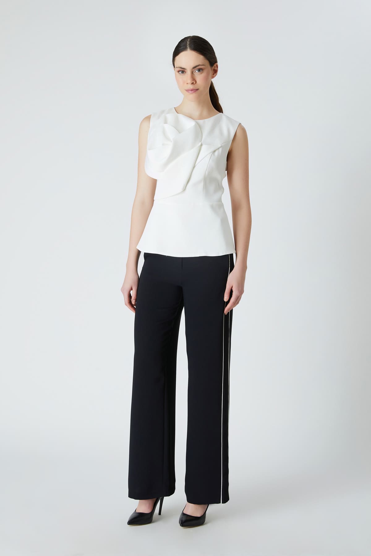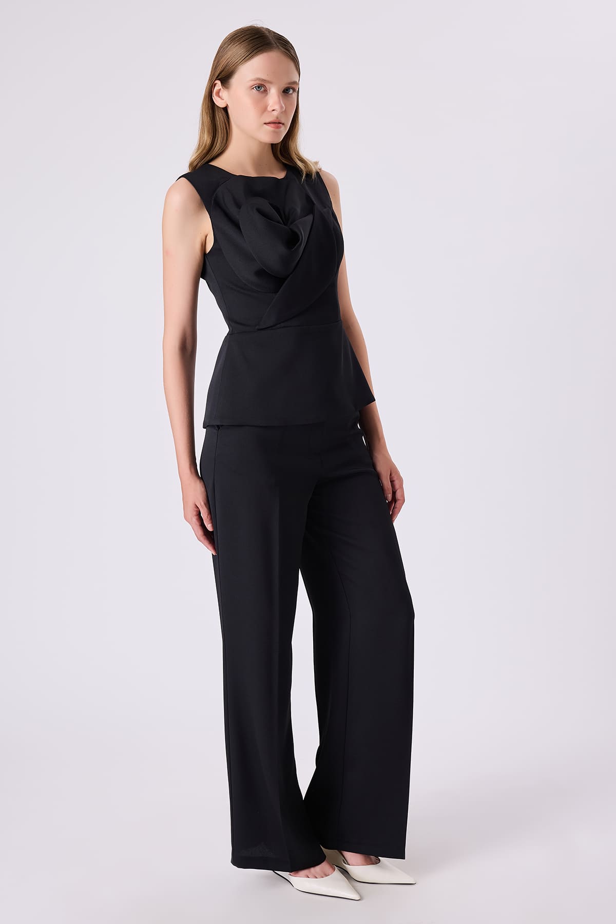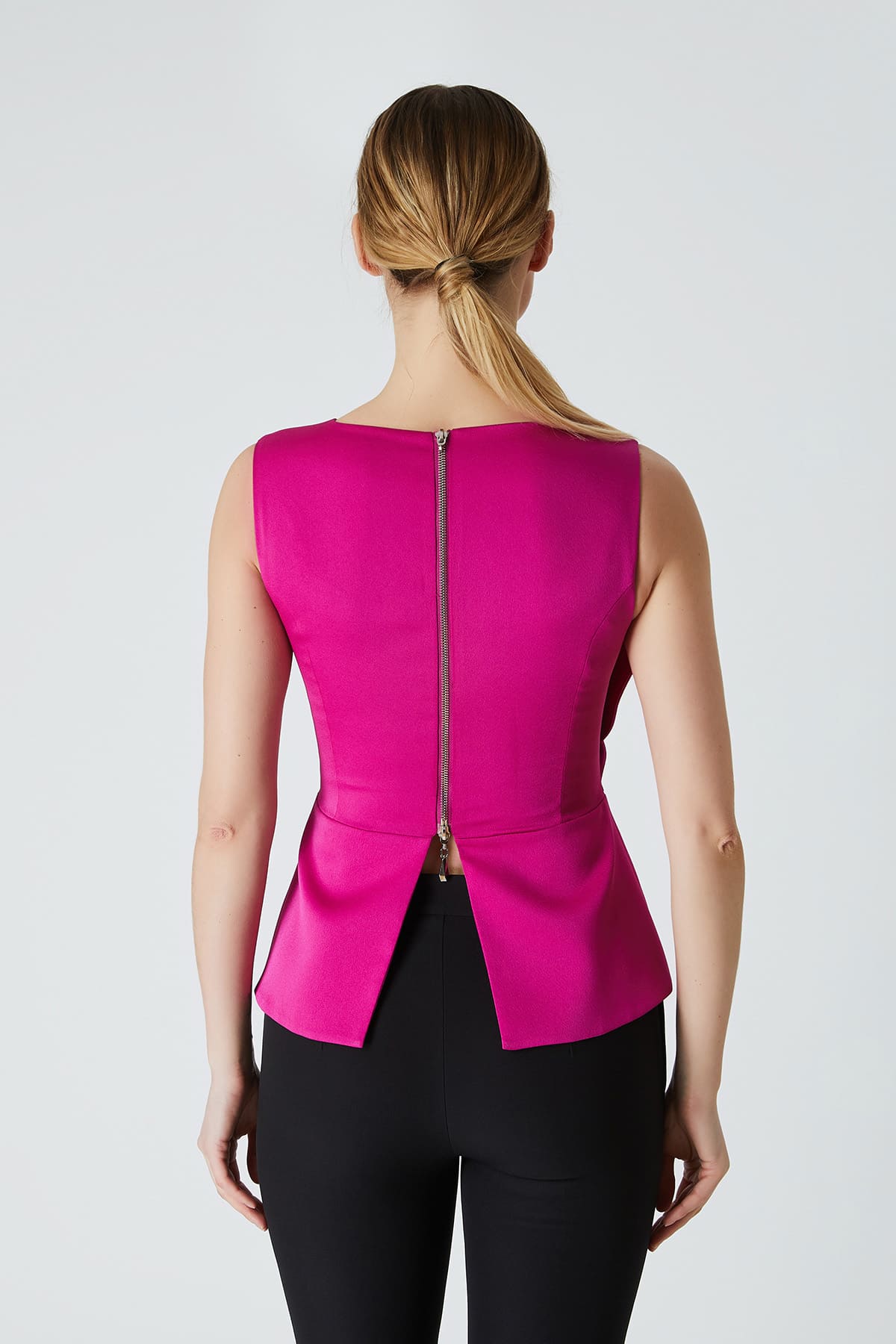 ÜRÜN BİLGİSİ:Parlak yüzeyli krep kumaş,bisiklet yakalı,kısa kollu,arka ortası metal fermuarlı,önü gül detaylı,fit form şık bluz.