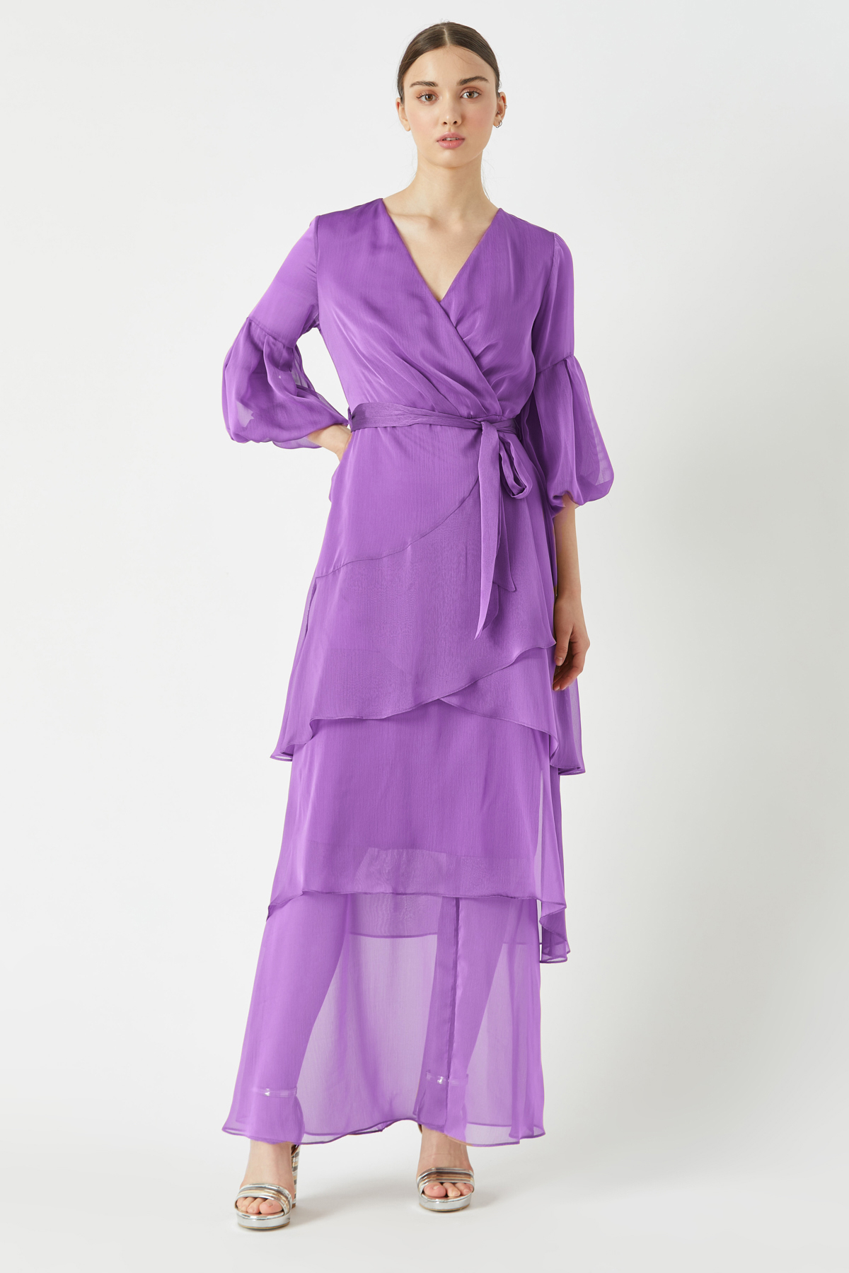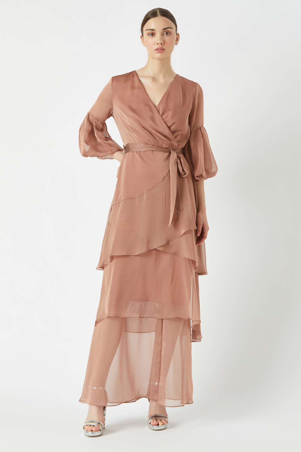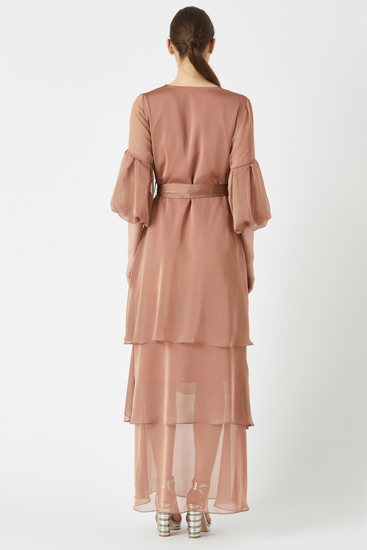 Volanlı kat kat uzun elbise