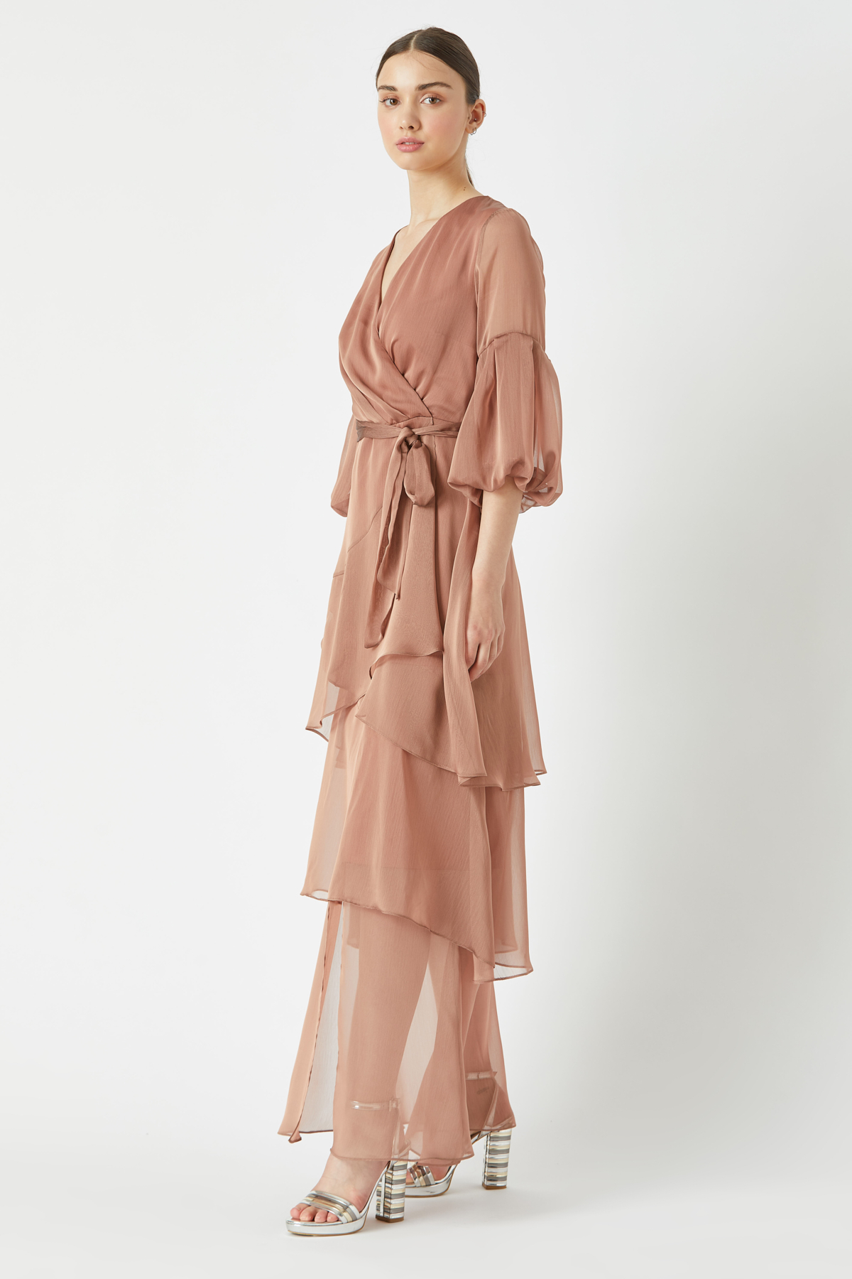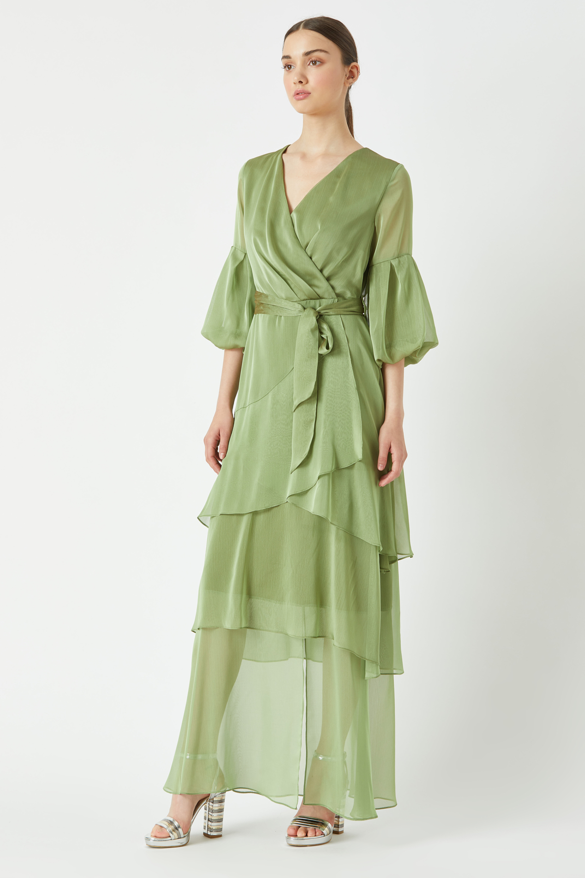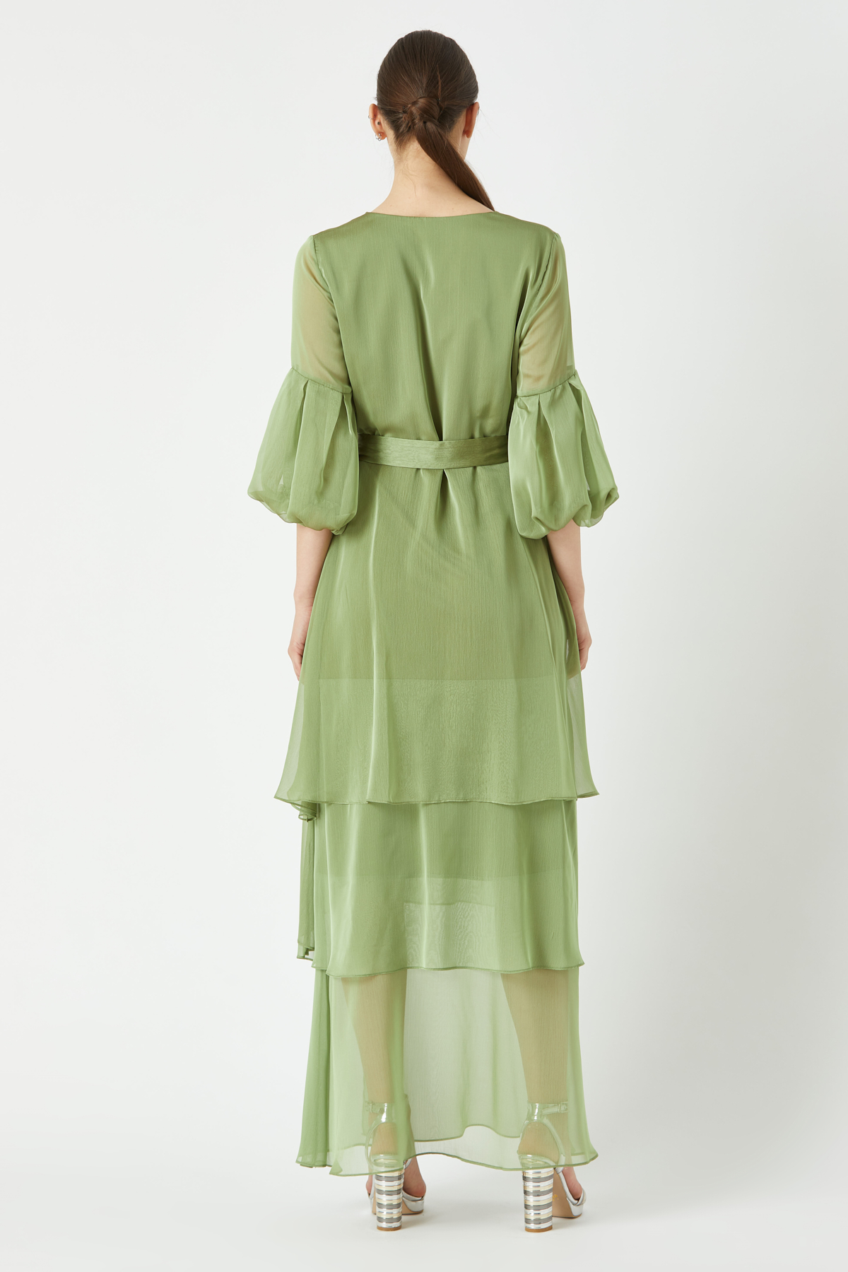 Volanlı kat kat uzun elbise