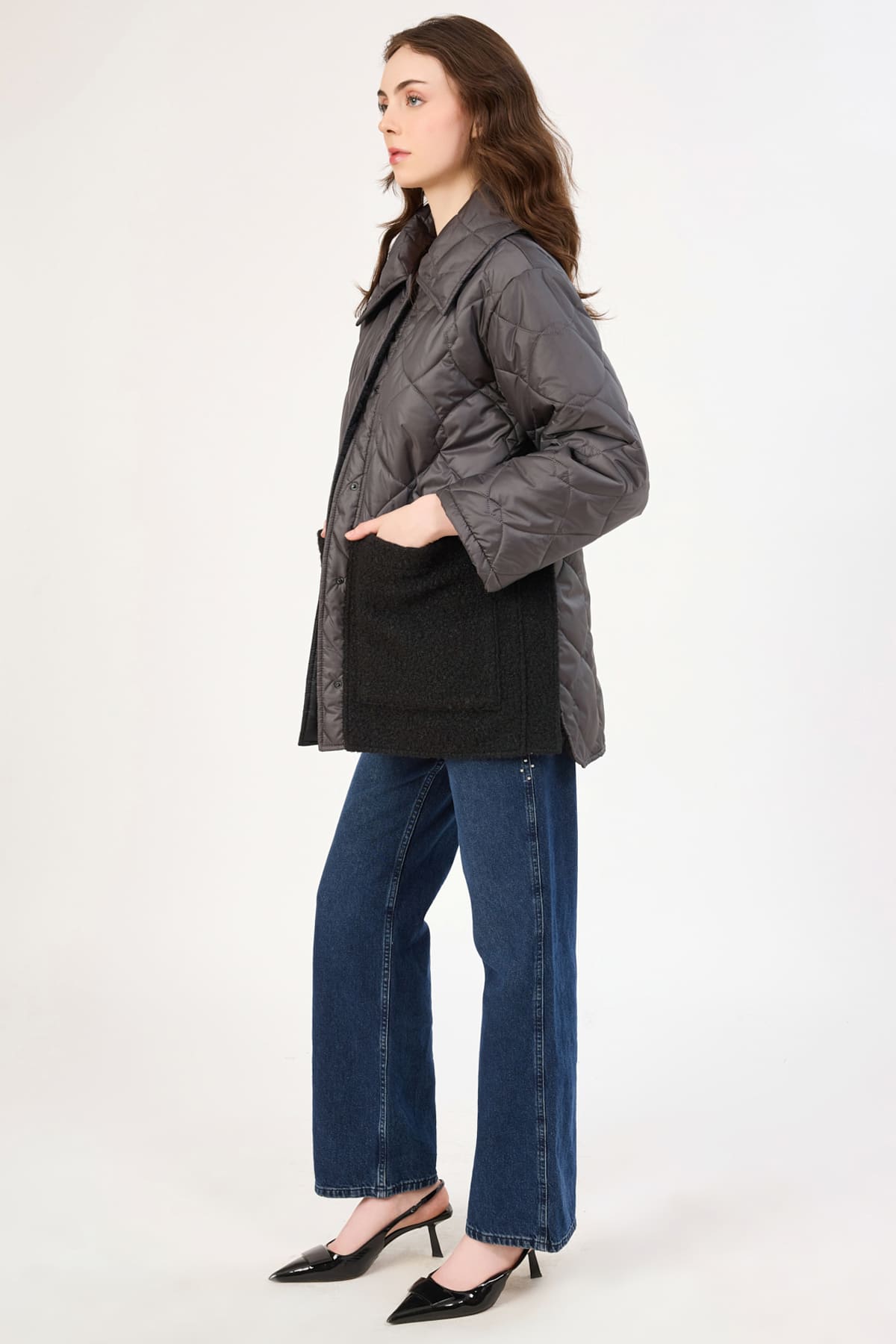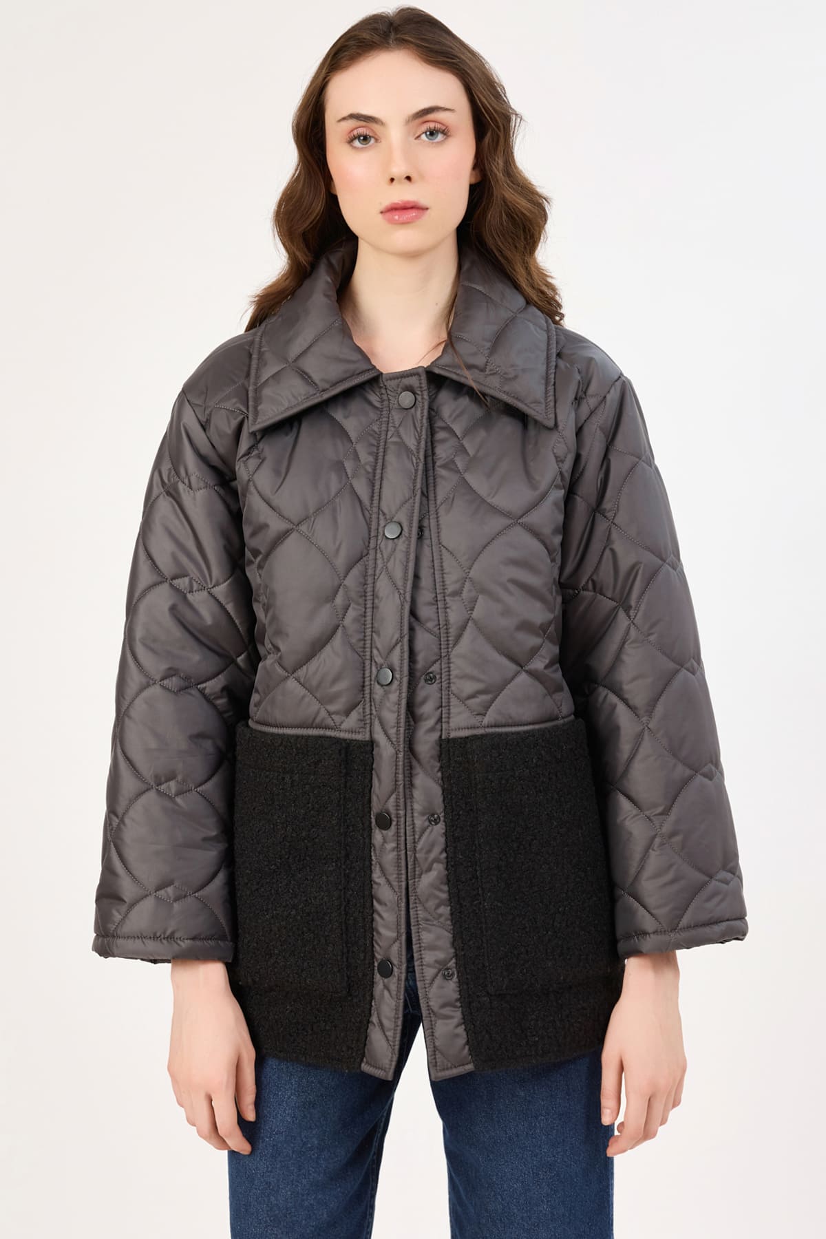 ÜRÜN BİLGİSİ:Dolgulu kalın dokusu ile kapitone kumaş,yakalı,çıt çıt detaylı,bütük cepli,astarlı,rahat form şık kapitone ceket.1 beden 36-38-40 2 beden 42-44-46 alabilir.