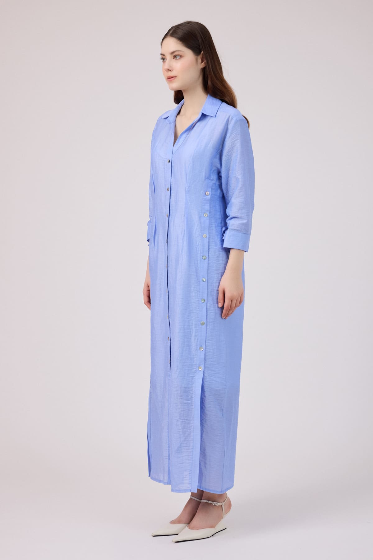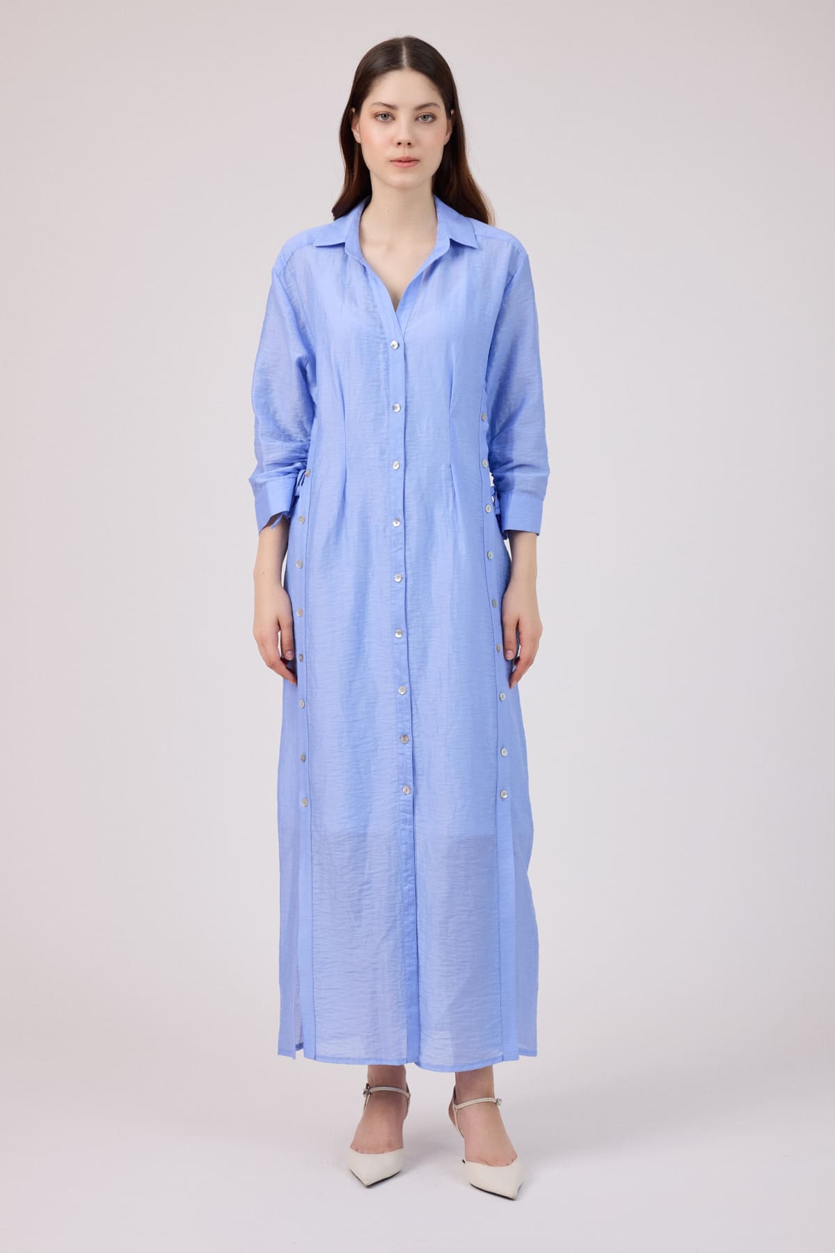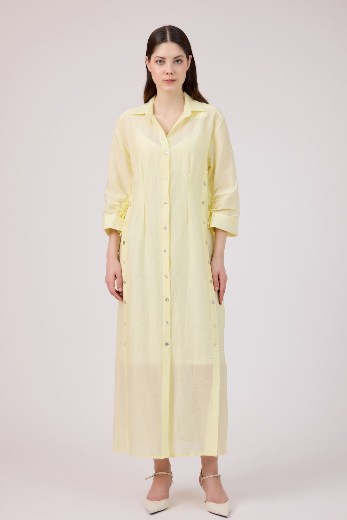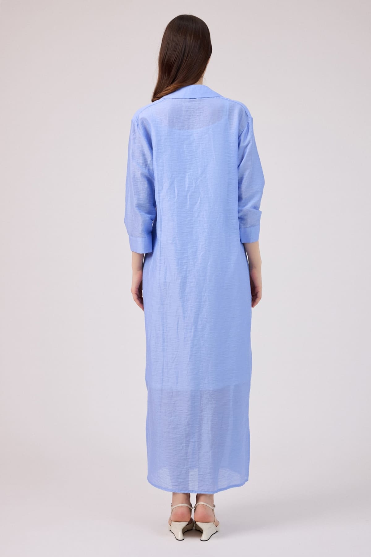 ÜRÜN BİLGİSİ:Doğal elyaflı pamuk ve keten karışımlı,ön yanları ve önü patlı düğmeli,kol uçları büzgü detaylı,iç ayrı astarlı ömlek elbise