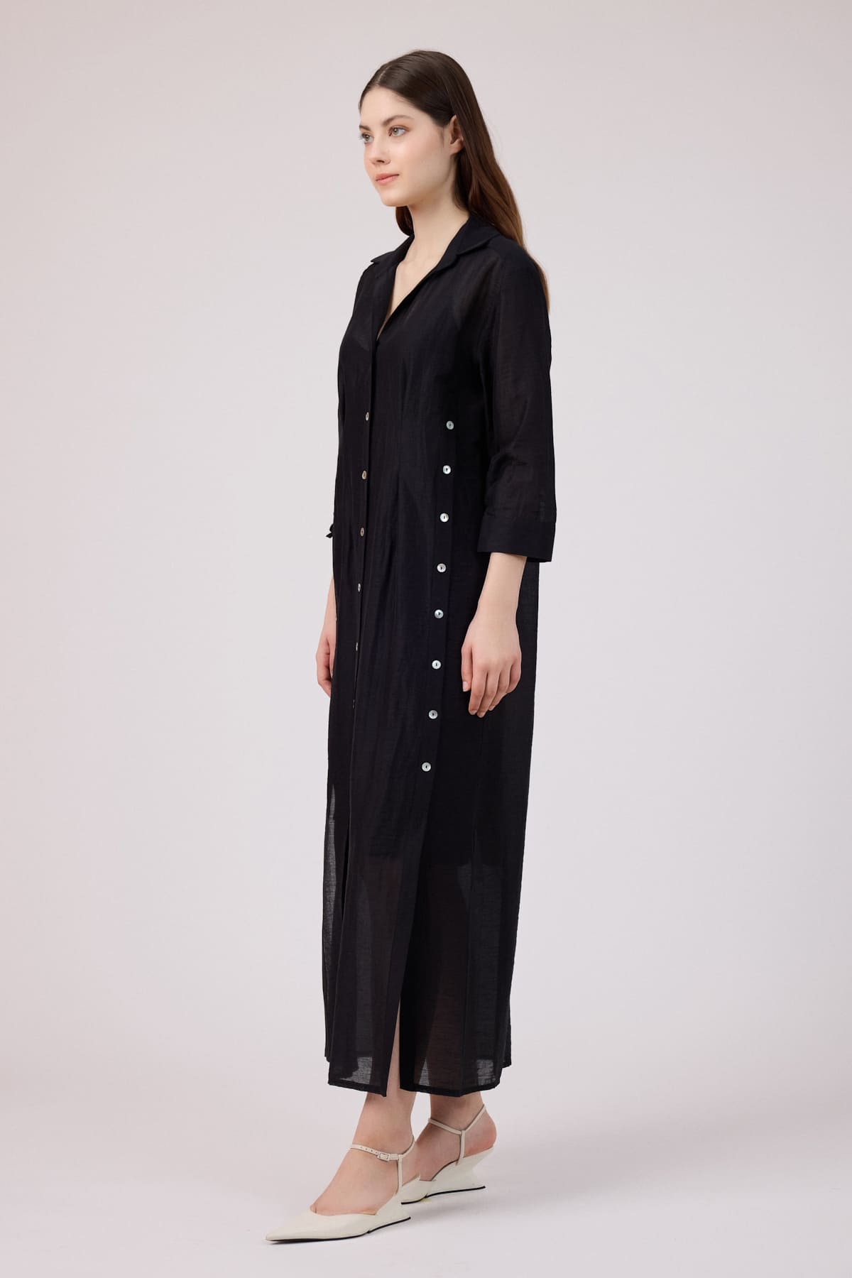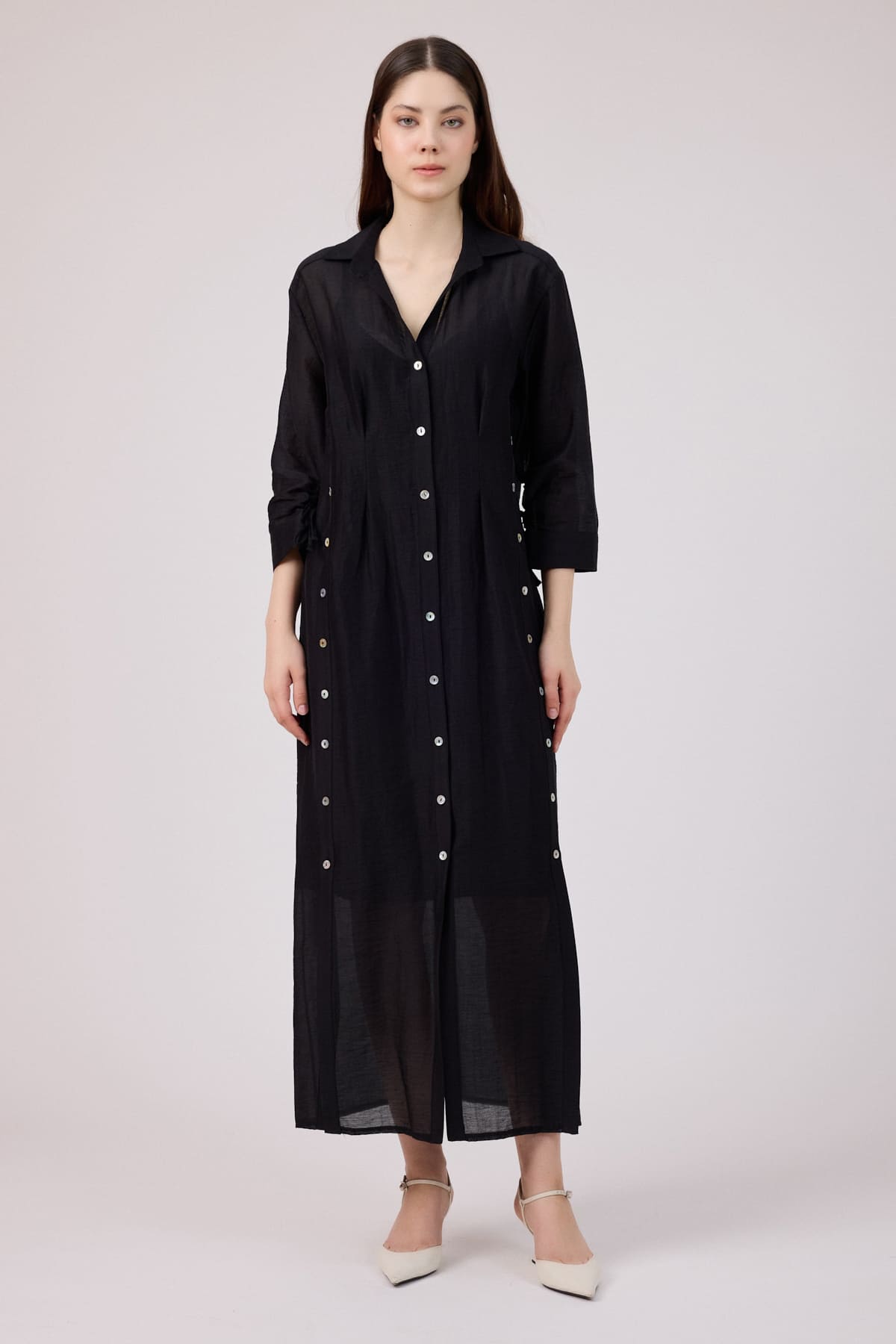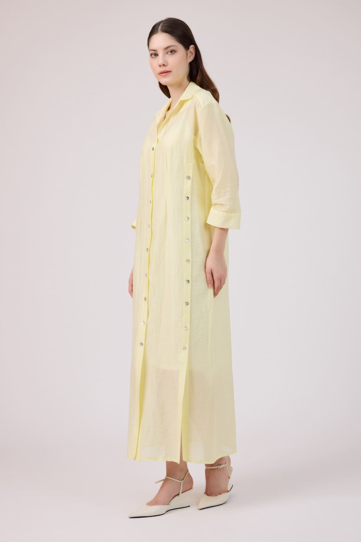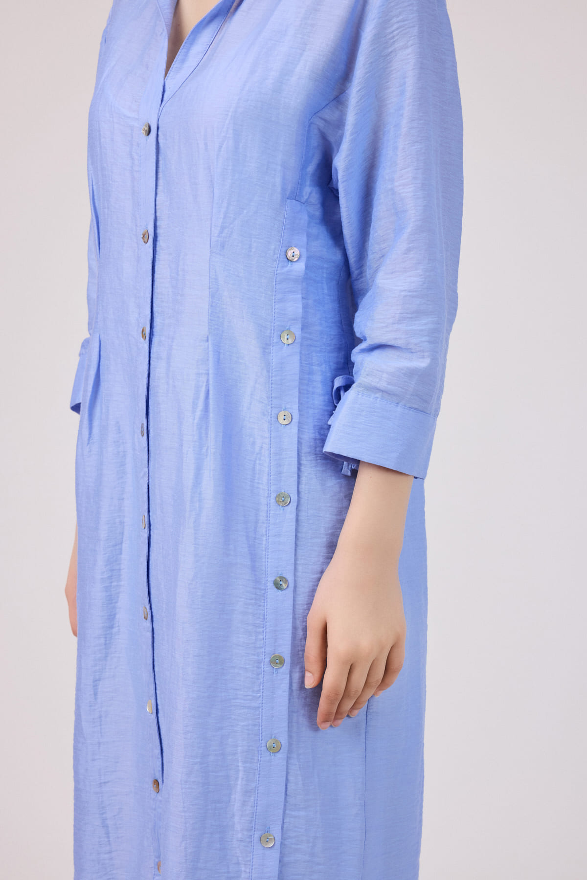 ÜRÜN BİLGİSİ:Doğal elyaflı pamuk ve keten karışımlı,ön yanları ve önü patlı düğmeli,kol uçları büzgü detaylı,iç ayrı astarlı ömlek elbise