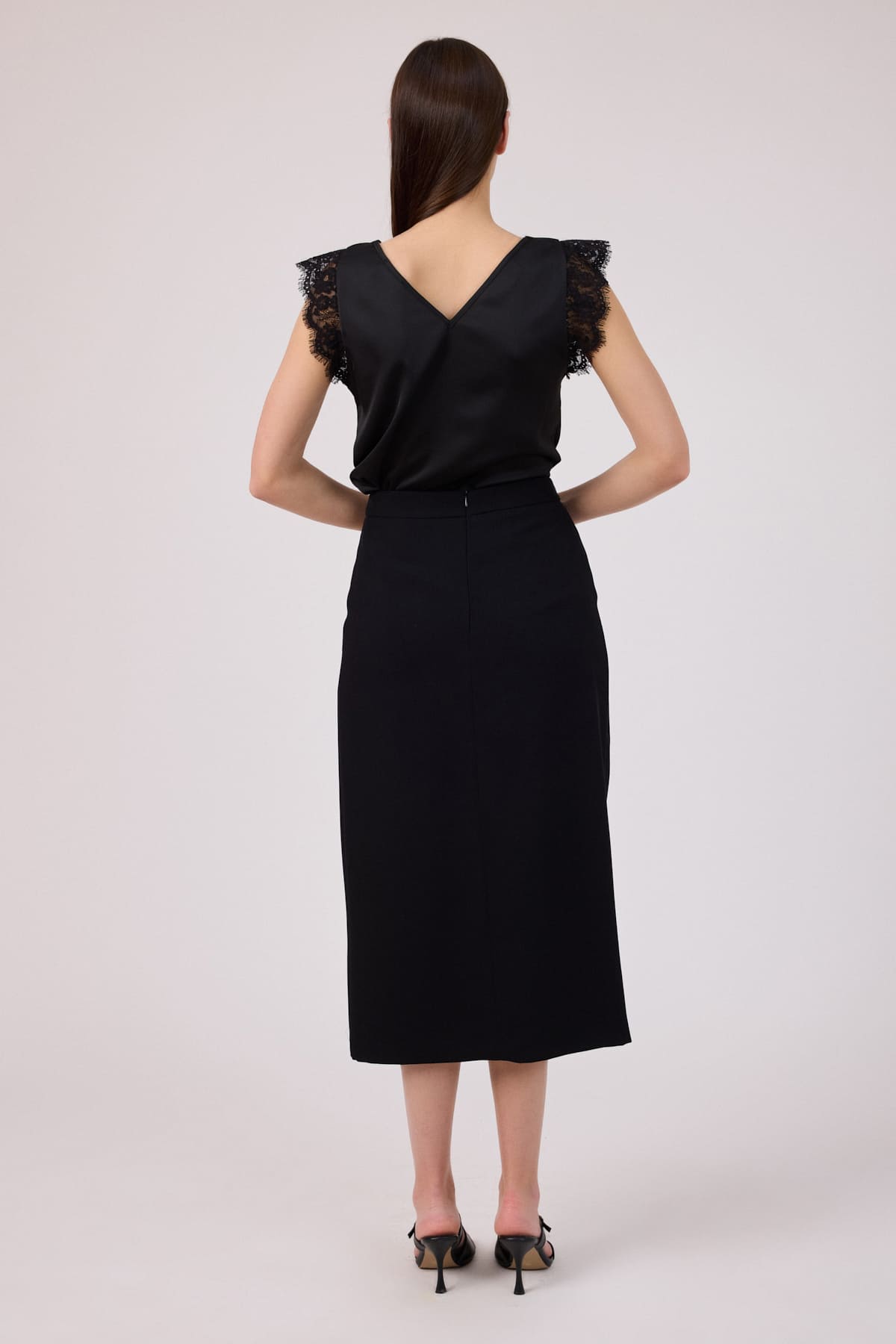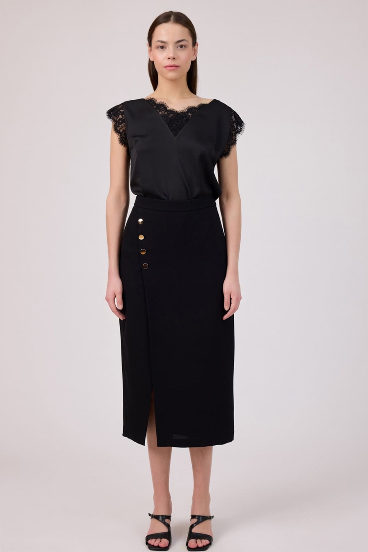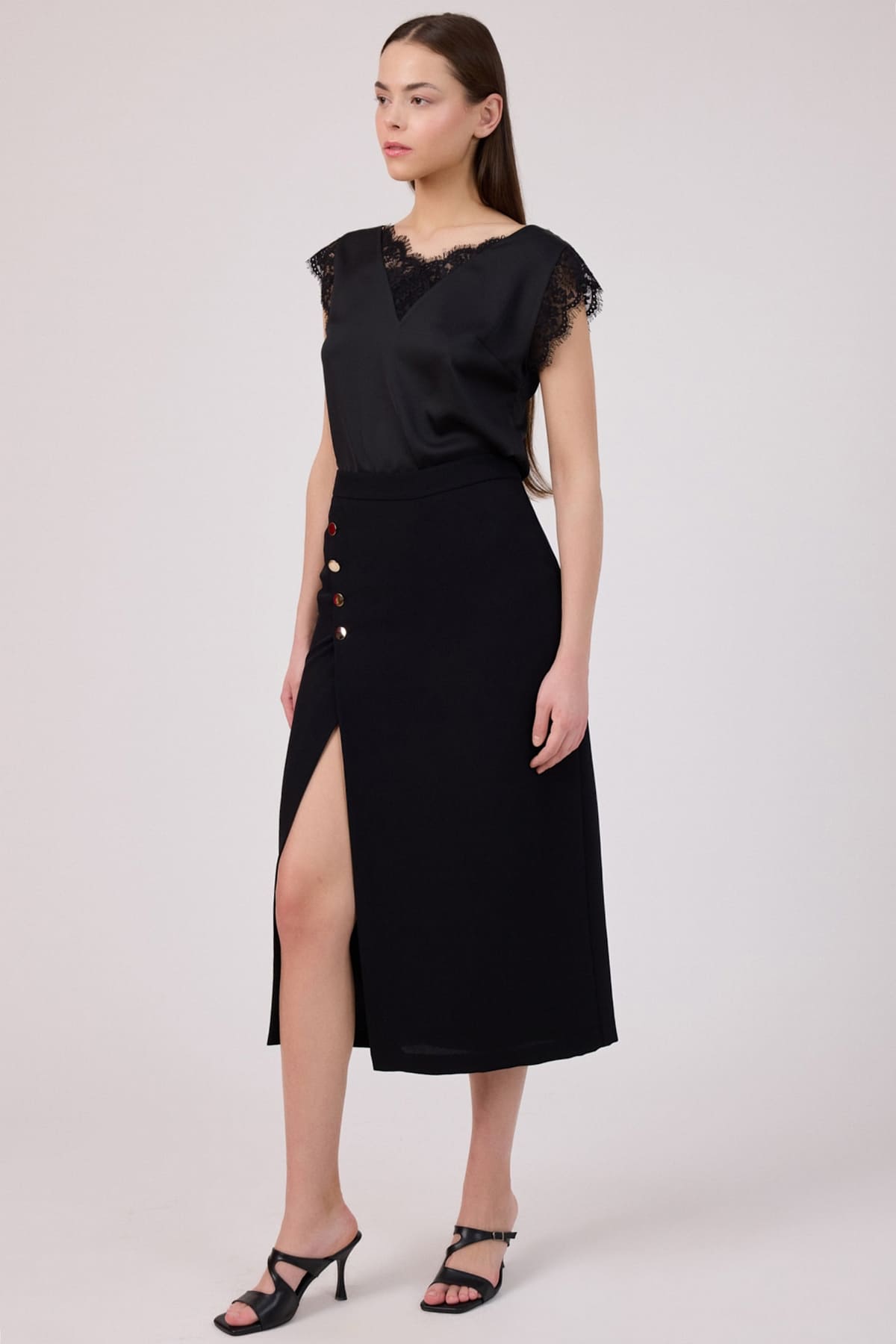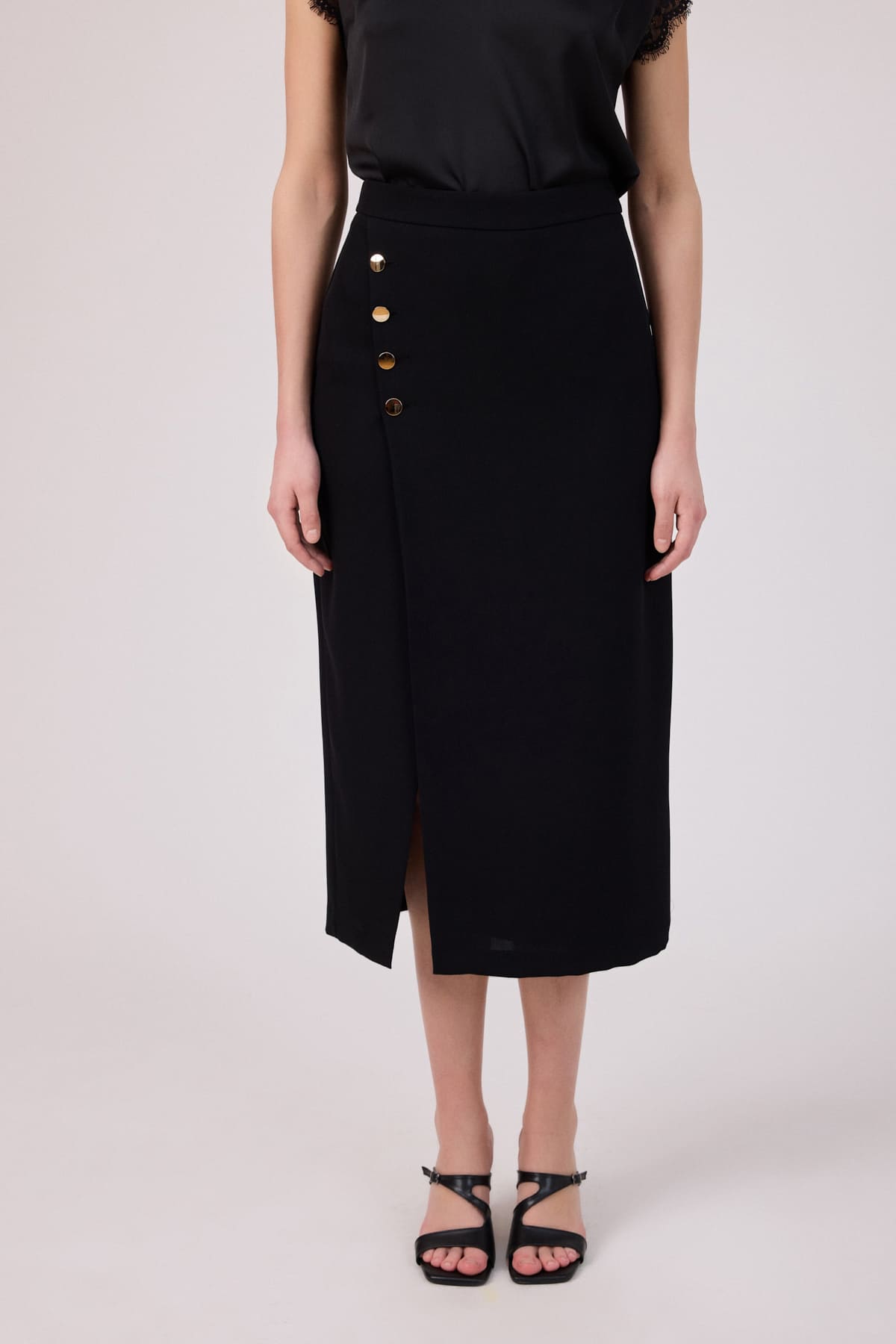 Yırtmaç detaylı düğmeli etek