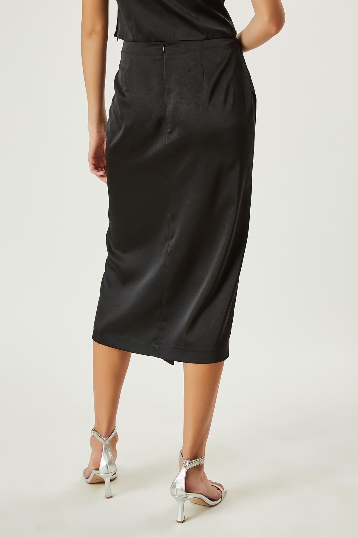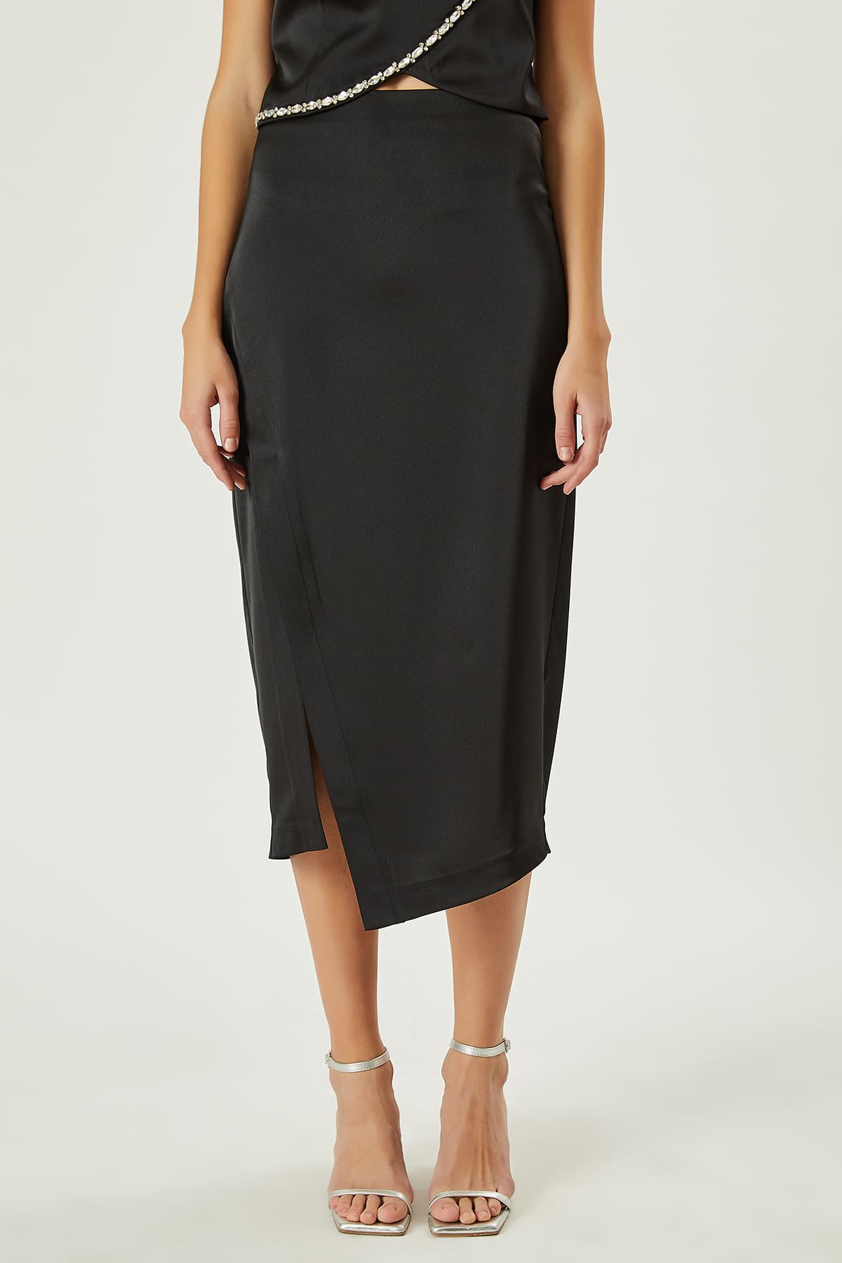 Yırtmaçlı saten etek