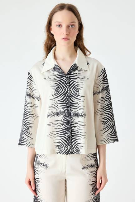 ÜRÜN BİLGİSİ:Hafif dökümlü yumuşak parlak,düğmeli,yarım kollu,düz form gömlek.